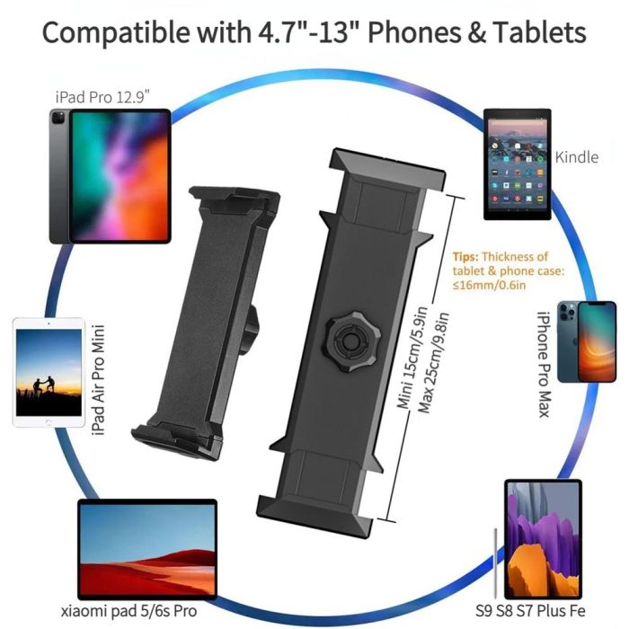 - Supports all phones and tablets from 4.7" to 13" inches.