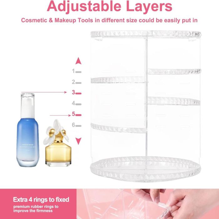 - Rotating Acrylic Makeup and Skincare Organizer