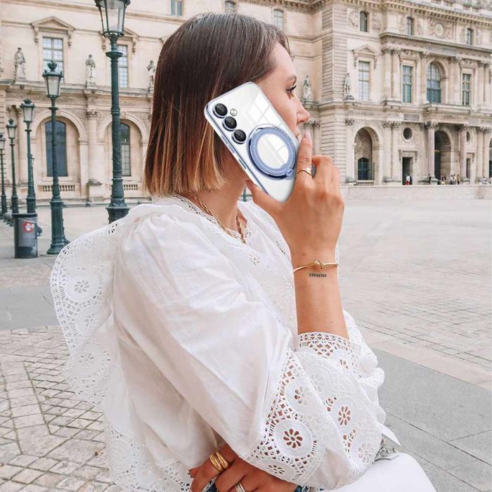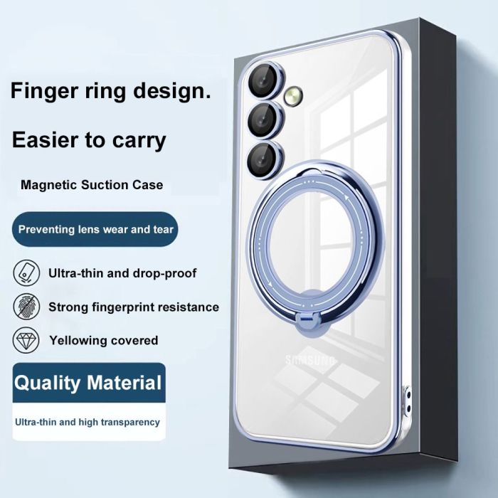This rotating magnetic stand protective case for Samsung devices is designed to combine durability with functionality. The magnetic stand allows for effortless rotation, making it easy to adjust your phone for viewing, typing, or video calls. Crafted from reliable materials, it offers strong protection against scratches, bumps, and daily wear while maintaining a sleek modern look. Perfect for anyone who values both style and convenience in one accessory.