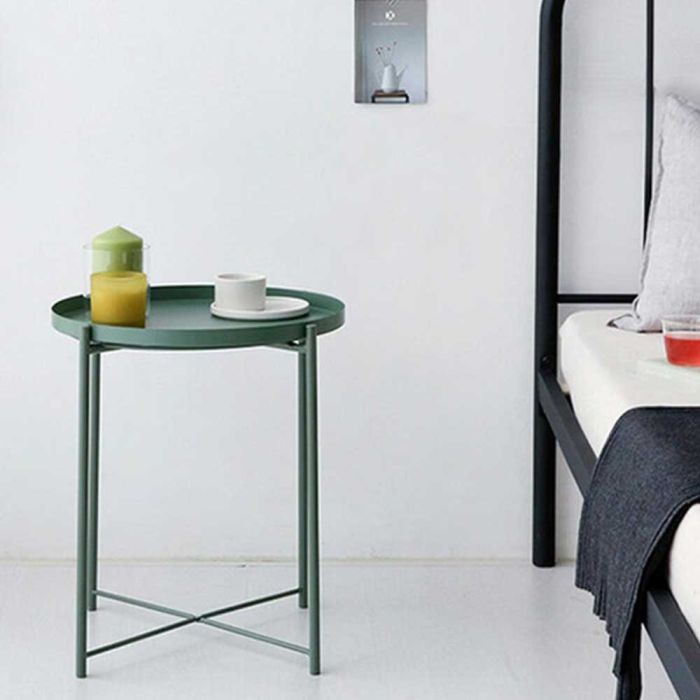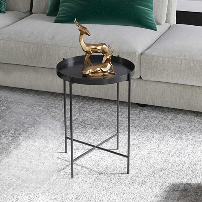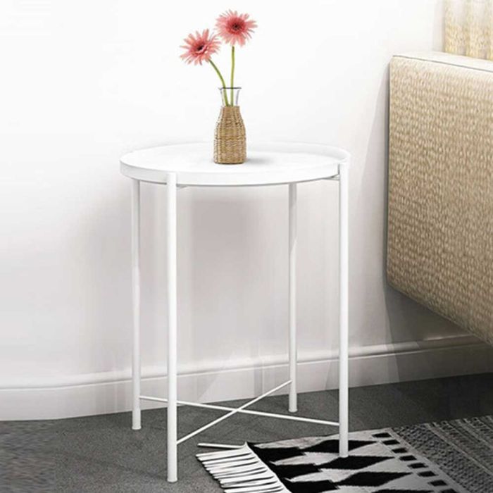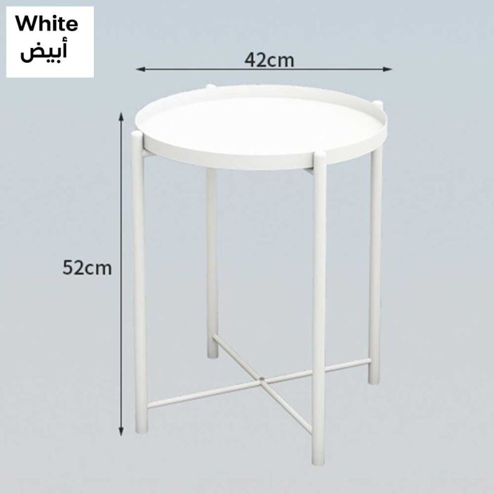 This round metal table is made with a coated metal structure, featuring a simple lightweight design for easy movement and use, offering a neat surface for serving or styling, and blending perfectly with small spaces for a modern touch