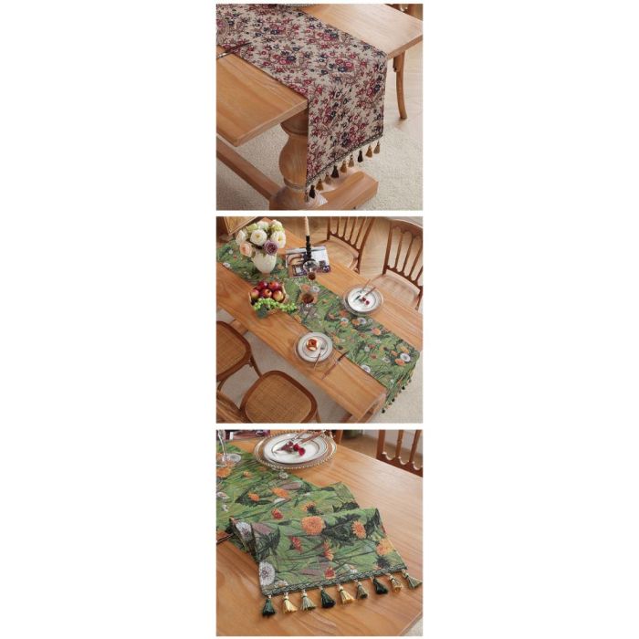 This Floral table runner made from an imitation cotton and linen blend, featuring elegant floral patterns and a luxurious touch, adds natural warmth and gives the table a refined and harmonious look