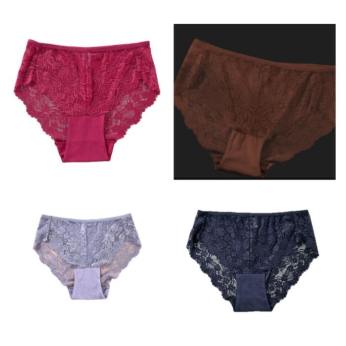 - Attractive Colored Lace Underwear for Women - 4Pcs