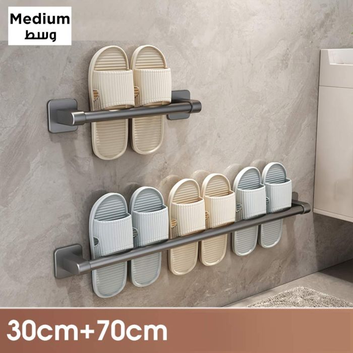 Eliminate the clutter of shoes scattered on your bathroom floor with this practical shelf. Its adjustable design allows you to store multiple pairs of shoes in one place. You can install it quickly and easily on any smooth surface without the need for tools or damaging walls. Its open design also helps drain water and dry shoes better, preventing odors and moisture buildup.Today's Deal is Multi Purpose Wall Mounted Slipper Organizer Rack