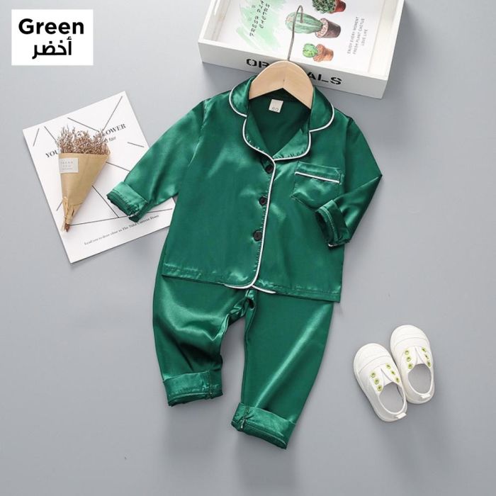 This children’s pajama set with long sleeves provides a feeling of softness and comfort during rest and sleep made of distinctive silky cotton fabric that cares for the child’s skin helps with comfortable sleep and maintains freedom of movement its elegant design is suitable for moderate weather and makes it an ideal choice for children at home