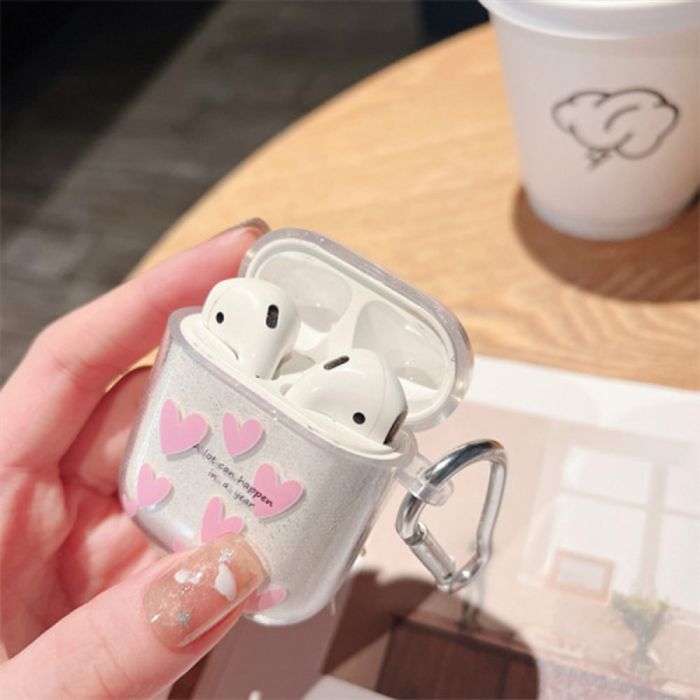 - Heart Glitter Protective Case with Buckle for AirPods
