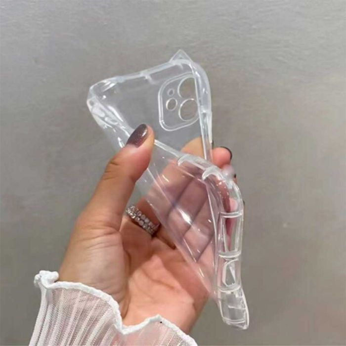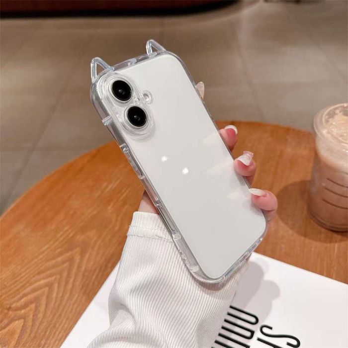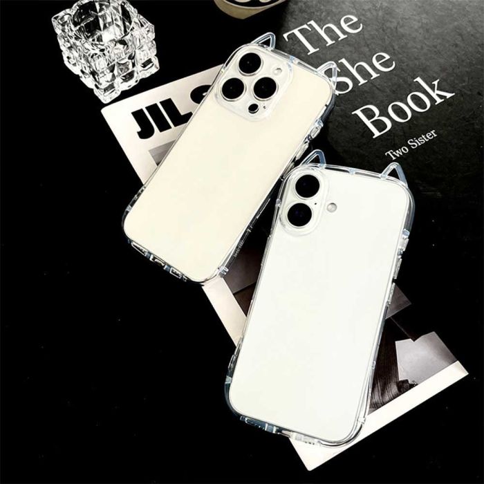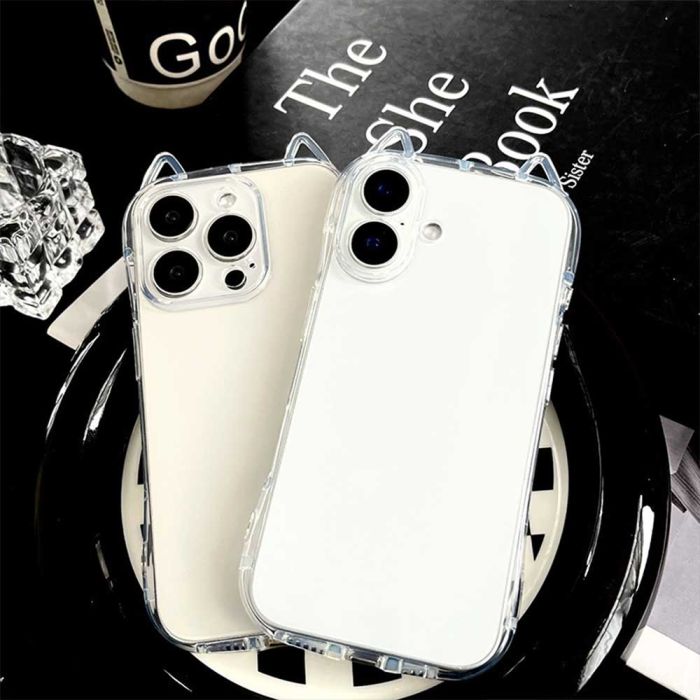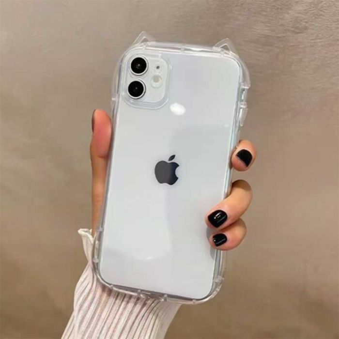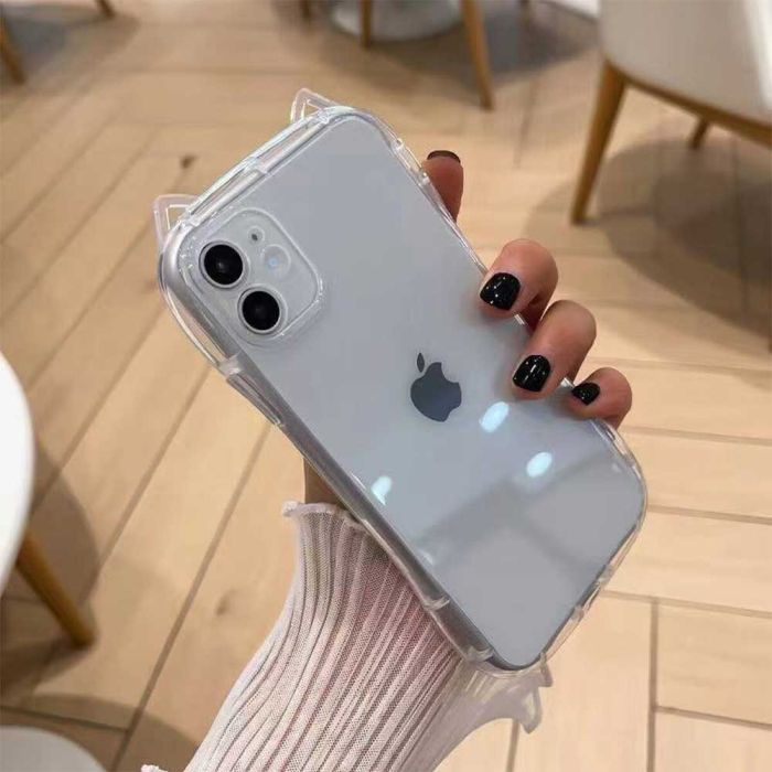 - Transparent Protective Case with Cat Ears Design for iPhone
