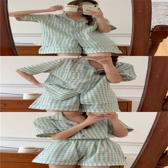 Today's Deal is Women's Short Pajama Set with Grid Green Design