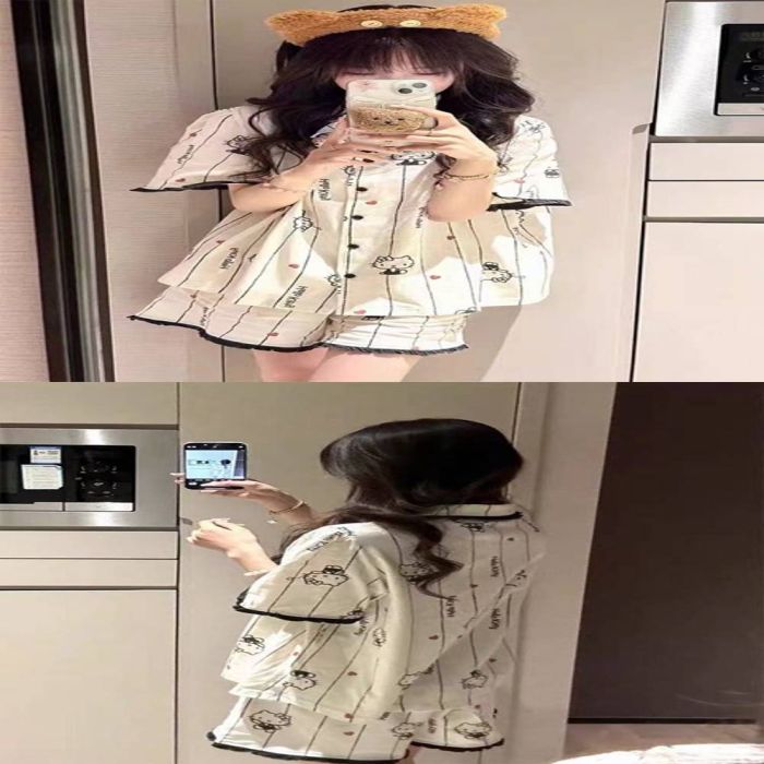 This Women's Summer Cardigan Set Pajamas Made from Lightweight, Breathable Material Are Perfect for Summer. This Set Features Practical and Comfortable Pieces, with a Cardigan Design That Allows for Easy Dressing and Removal. Cartoon Prints or Subtle Patterns Add a Fun and Friendly Touch. It's the Perfect Choice for Comfortable and Stylish Homewear for Students or for Everyday Use.