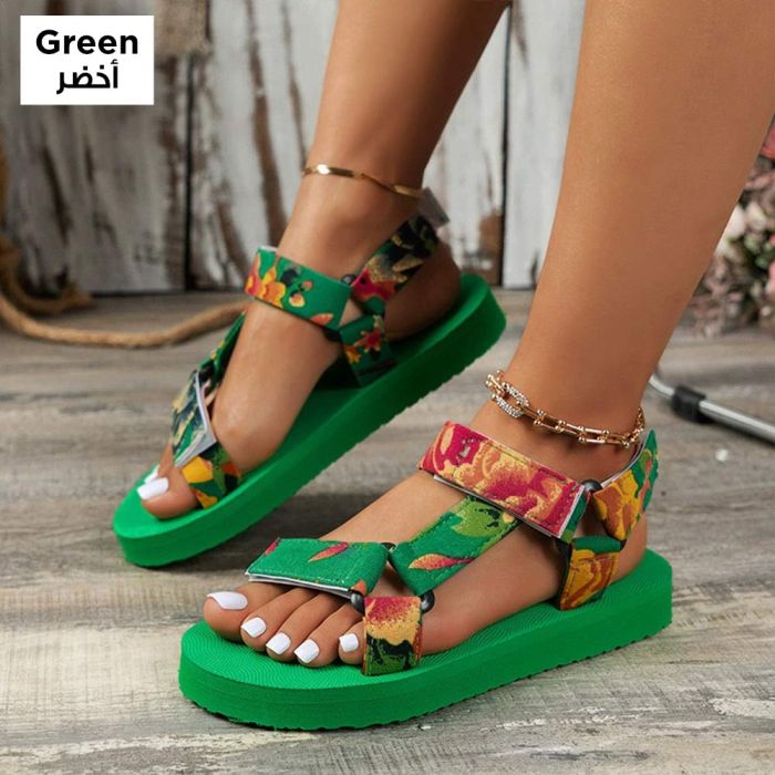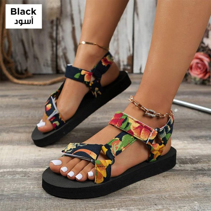 Colorful Patch Ethnic Summer Sandals with Thick Sole and Velcro Closure - Big Flower