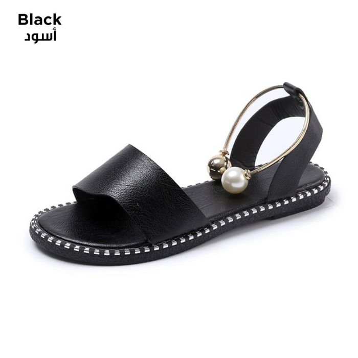 Simple Flat Roman Sandals Open-Toe with Pearl Buckle for Women
