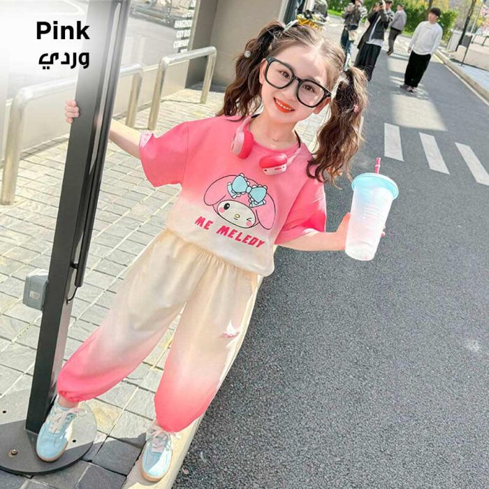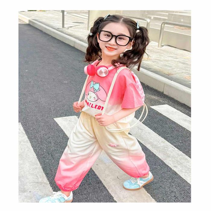 - Girls 2Pcs Summer Cotton Set with Cartoon Print