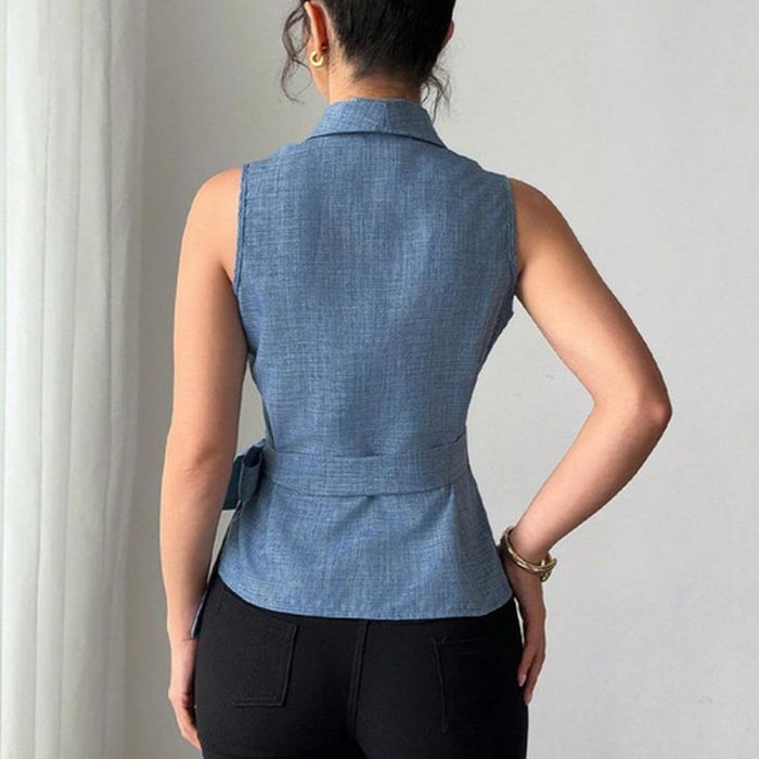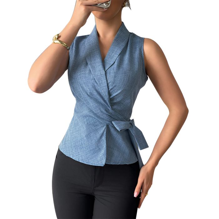 This Sleeveless Blouse for women is made from luxurious Lurex fabric, offering you a modern and comfortable look thanks to its design that gently drapes over the body. It is lightweight and easy to carry, making it the perfect choice for hot summer days. It adds a touch of elegance and distinction to your daily appearance with its high quality and meticulous details that reflect your refined taste.