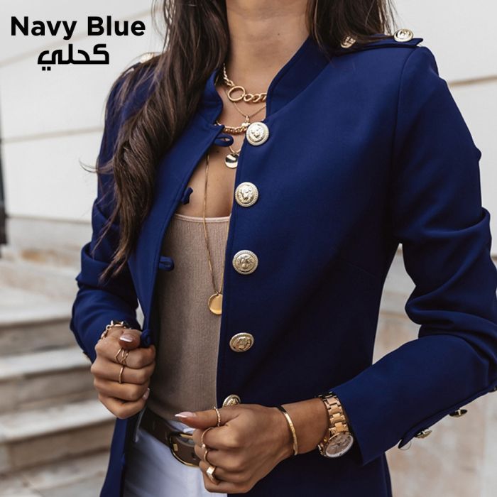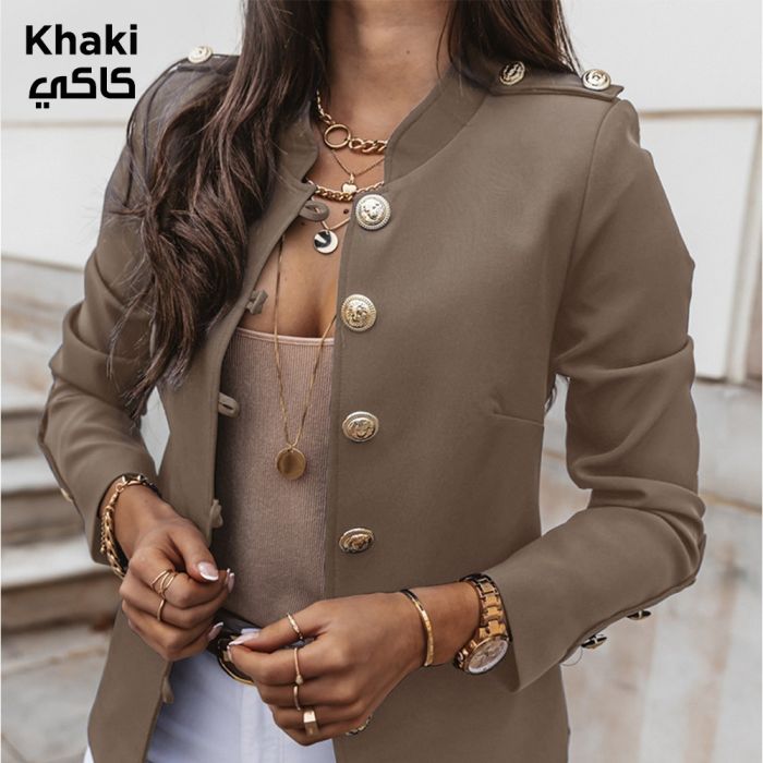 This Women's Long-sleeved, Slim-fit Cropped Blazer is Crafted from Cotton for a Professional Look. It Features a Short, Narrow Cut That Accentuates the Waist. It's Ideal for Work, Meetings, and Formal Occasions That Require a Polished Look. It Maintains Its Quality and Shape Thanks to Meticulous Stitching.
