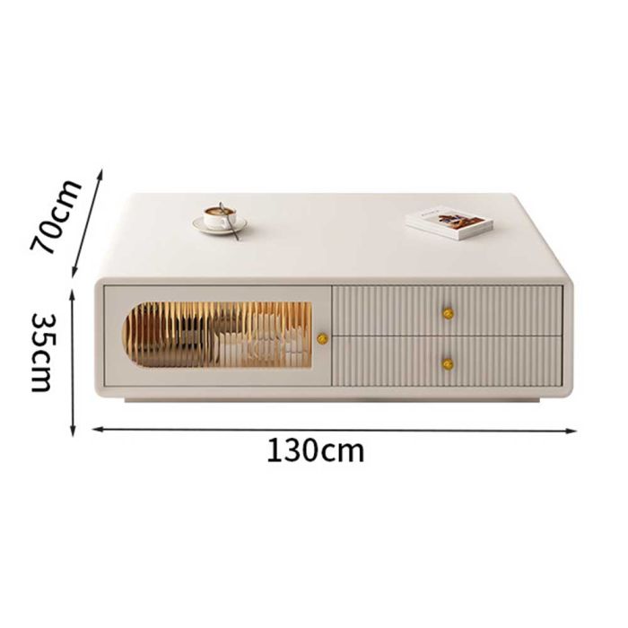 Multi-purpose wooden table with 4 drawers and 2 doors made from carefully selected materials, featuring a smart layout with 2 drawers and a front door, plus 2 drawers and a rear door, offering organized storage and an elegant look suitable for various spaces