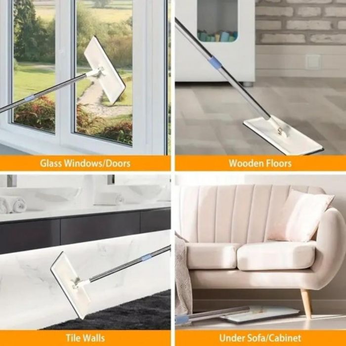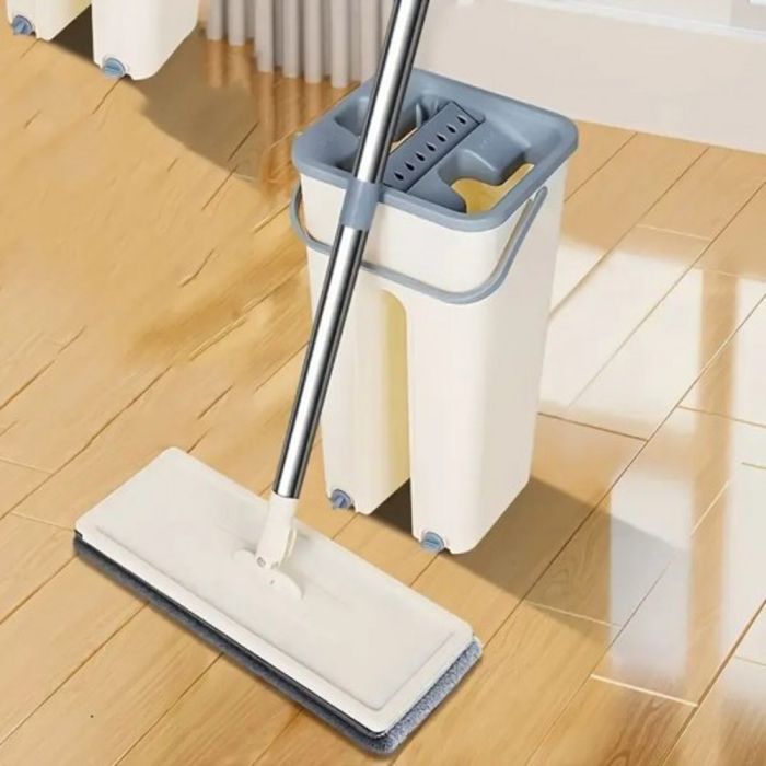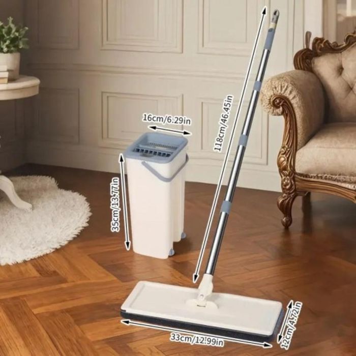 Experience a unique cleaning experience with the smart 2-in-1 self-washing and drying mop. Designed to make cleaning easier and more efficient, the 360-degree rotating mop head is easy to maneuver to reach tight spaces and under furniture. The dual-compartment bucket ensures clean and dirty water is separated for hygienic cleaning, while the hands-free wringing system allows you to easily wring the mop without touching it, keeping your hands clean. Finally, the microfiber pads are highly absorbent and washable, making them ideal for all floor types and reusable.