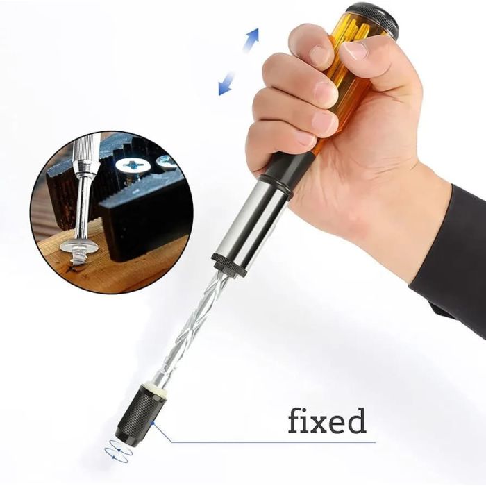 This semi-automatic screwdriver is twice as fast as a standard one, boosting your work efficiency and reducing labor. It comes with a variety of replaceable bits, making it perfect for laptops, PCs, furniture, and more. The chrome-vanadium blade and bits ensure durability, while the ergonomic, slip-resistant grip handle provides a comfortable experience. The simple self-locking mechanism allows for easy assembly and disassembly, making it ideal for handheld use.