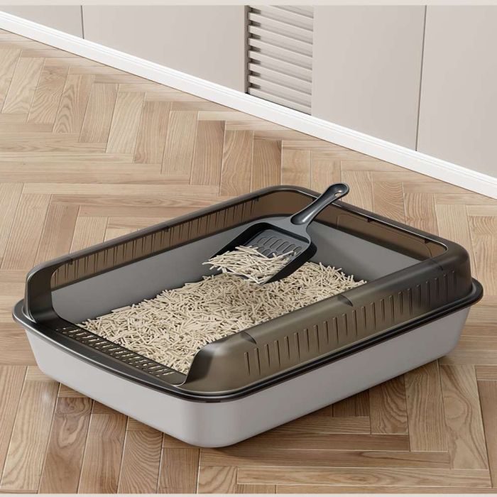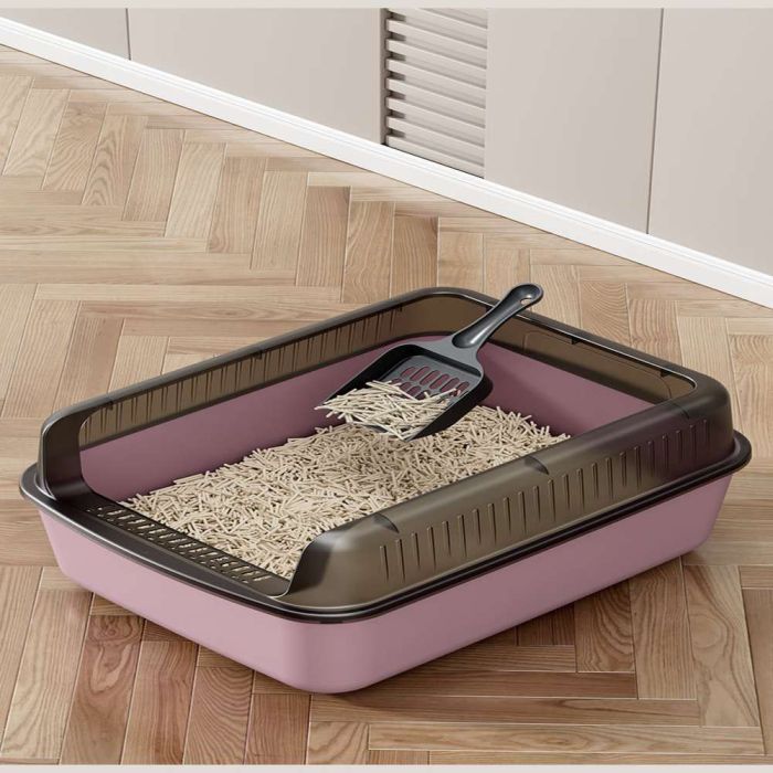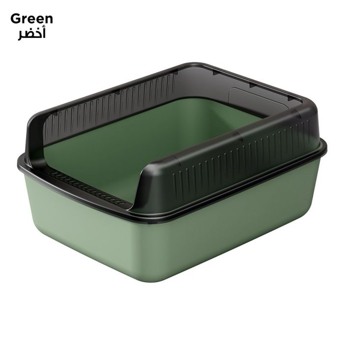 This elegant and larg cat litter box, made from high-quality plastic, offers ample space for your cat's comfort and ensures cleanliness with its semi-enclosed design that reduces odor spread. It features a high barrier to prevent litter scattering and ensures easy cleaning, making it the perfect choice for cat owners seeking a product that combines functionality and style.