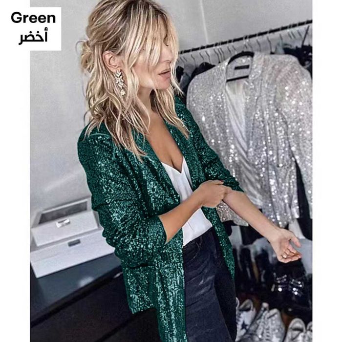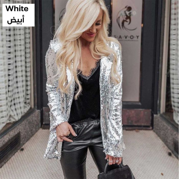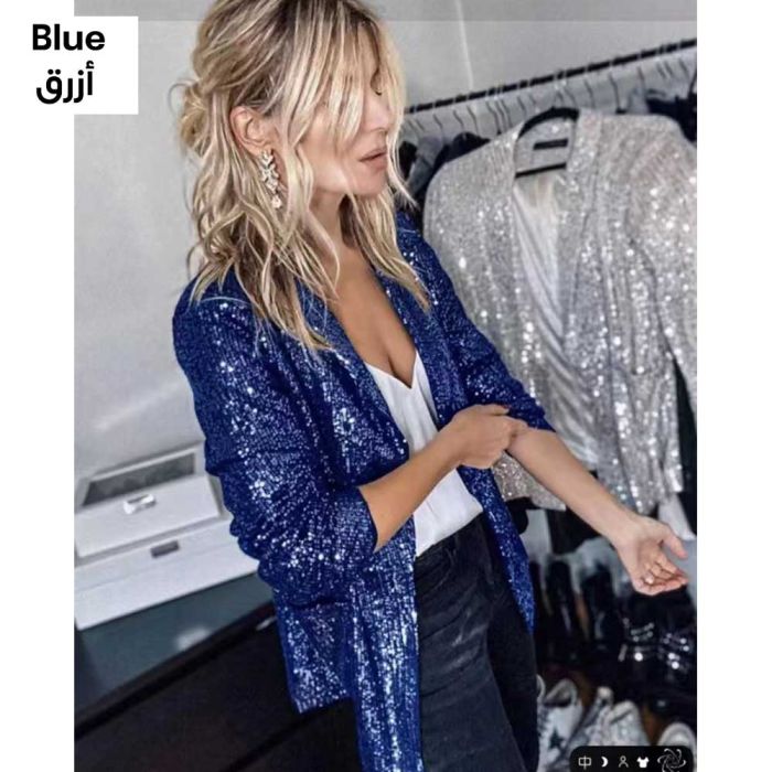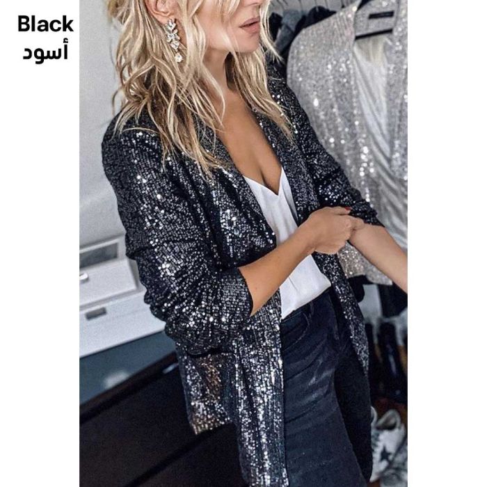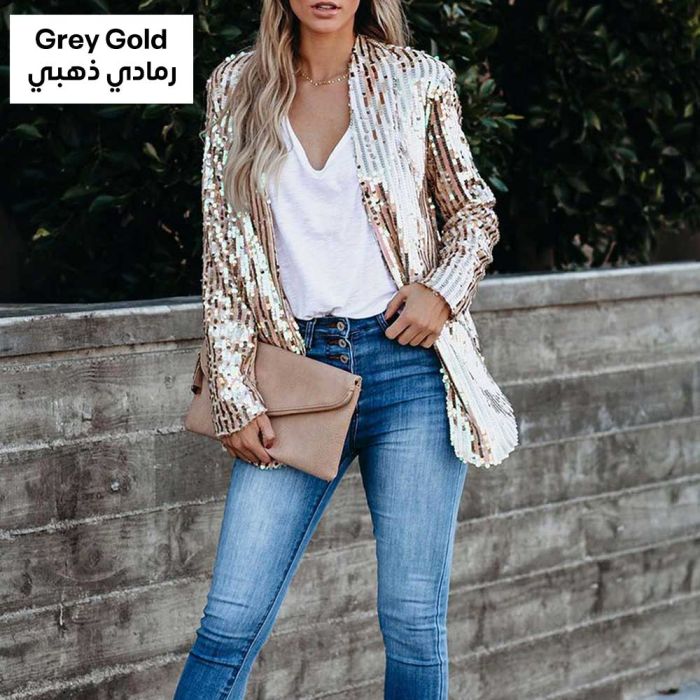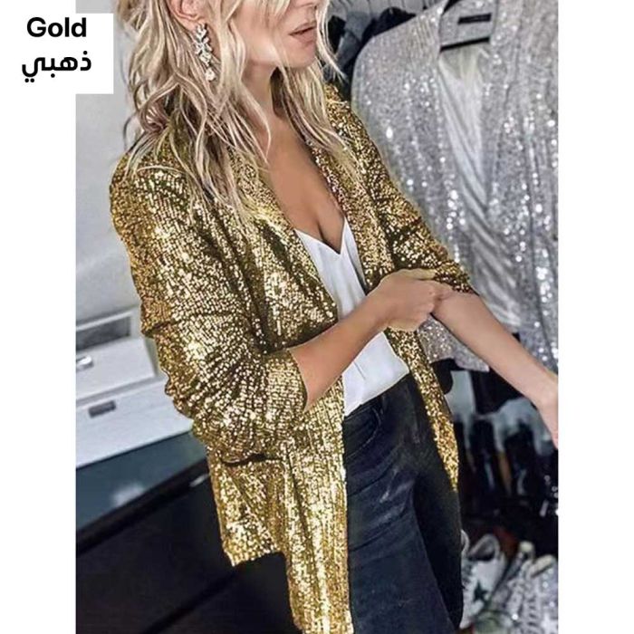 This Elegant Sequin Blazer for Women is Crafted from High-quality Fabrics Covered in Shimmering Sequins. Featuring a Modern Design and Long Sleeves, This Blazer is Perfect for Adding a Touch of Sophistication and Fun to Any Look. It Can Be Worn for Evening Parties and Special Occasions, and Maintains Its Quality and Shine. It is an Essential Piece for Those Seeking Modern and Distinctive Elegance.