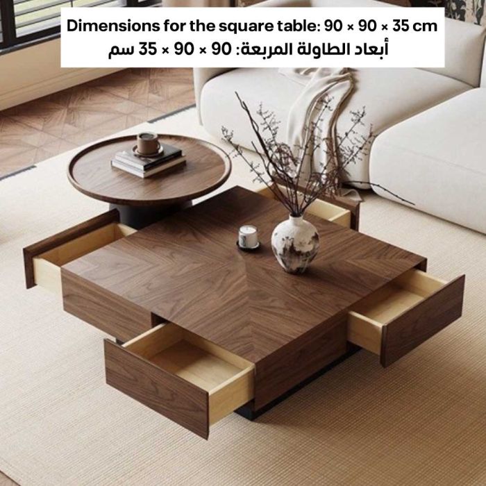 - Dimensions for the square table: 90 × 90 × 35 cm