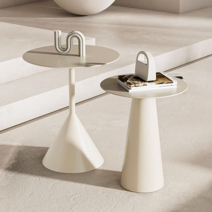 This set of 2 conical design tables is made of durable metal, offering an elegant surface for display or serving, balanced construction with high stability, seamlessly complementing modern interiors with a refined touch