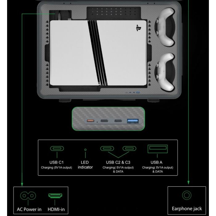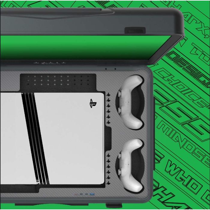 The SHARX QUEST aims to provide a no-compromise portable gaming experience, allowing users to play console games anywhere. It emphasizes true console compatibility, high-performance visuals and audio, and a durable, travel-friendly design. The case is presented as a fully equipped gaming setup that protects the console and keeps gear organized