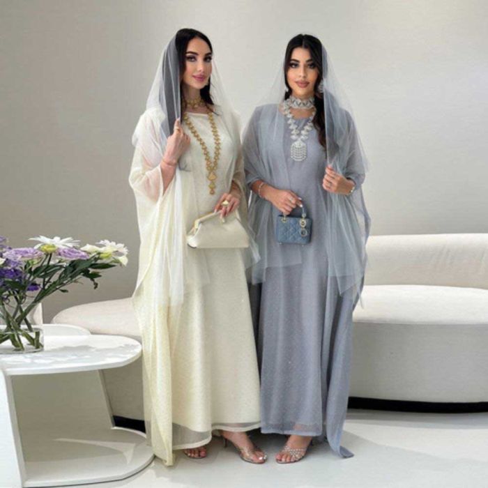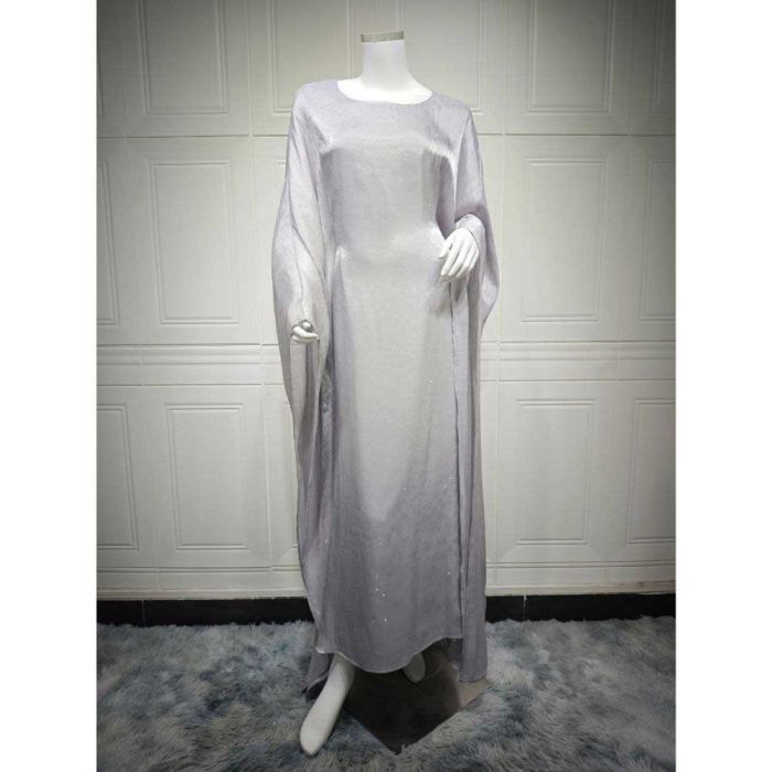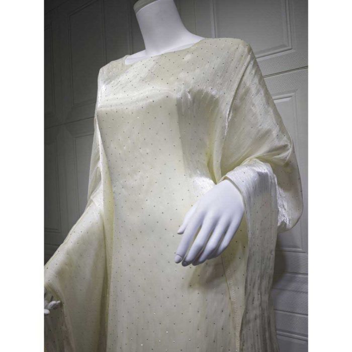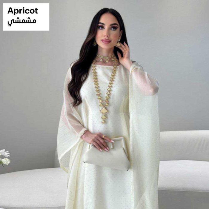 This Sheer Sleeves Waist-Defined Abaya for Women made of smooth polyester, featuring an elegant flowing design that adds a refined feminine touch, offering a balanced look suitable for everyday wear and special occasions