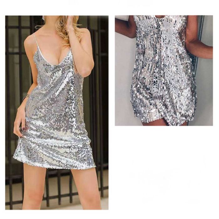 - Shiny Short V-Neck Sleeveless Dress for Women