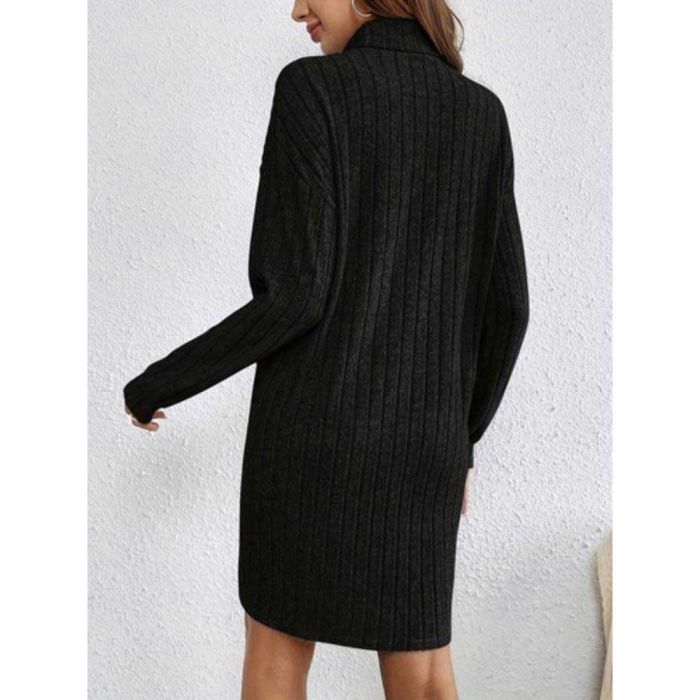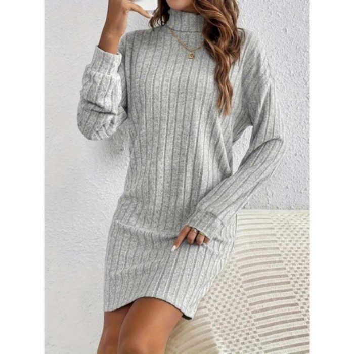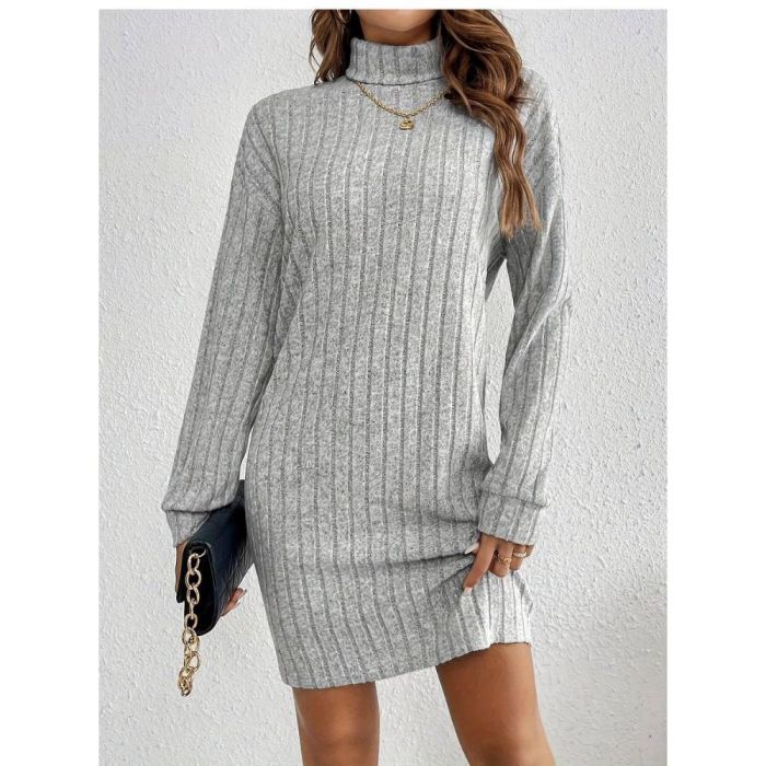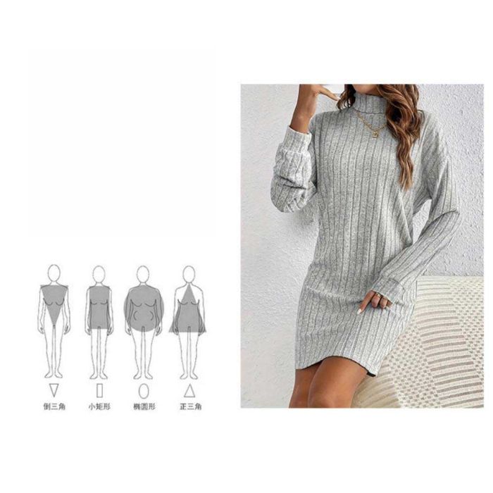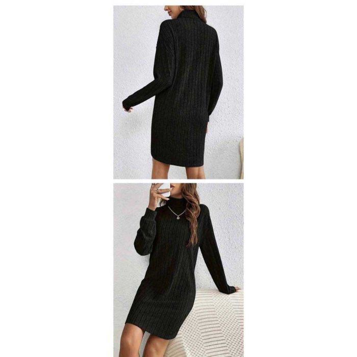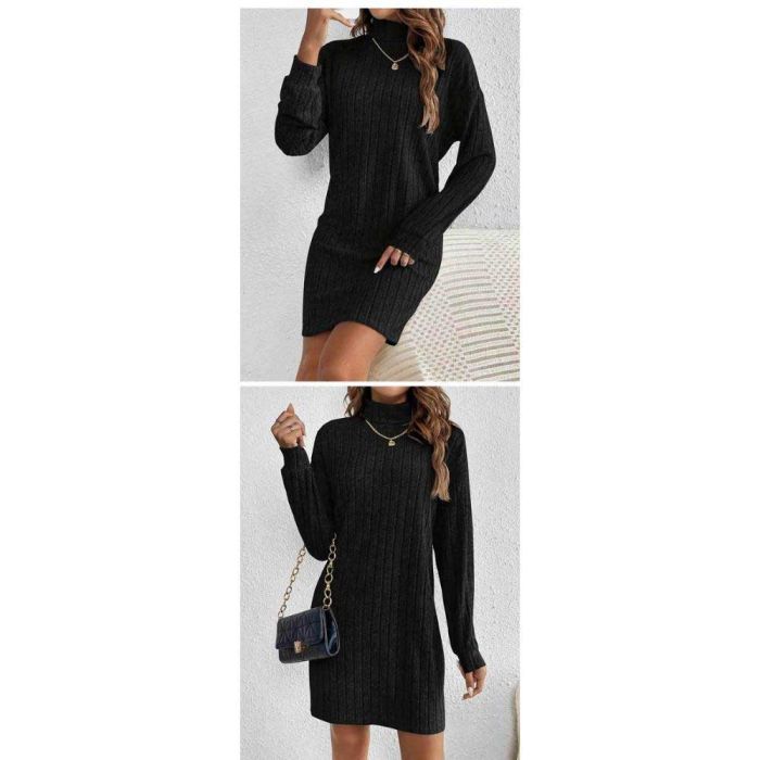 This Short high neck knit dress for women made from a soft blended fabric that provides warmth and comfort, featuring an elegant design that enhances the silhouette, suitable for everyday and winter looks, comfortable to wear