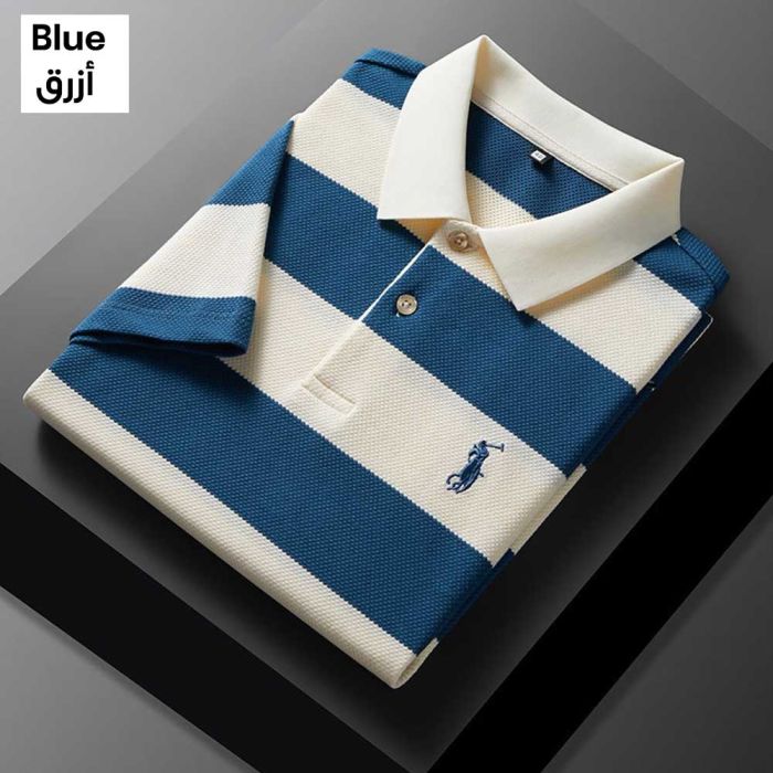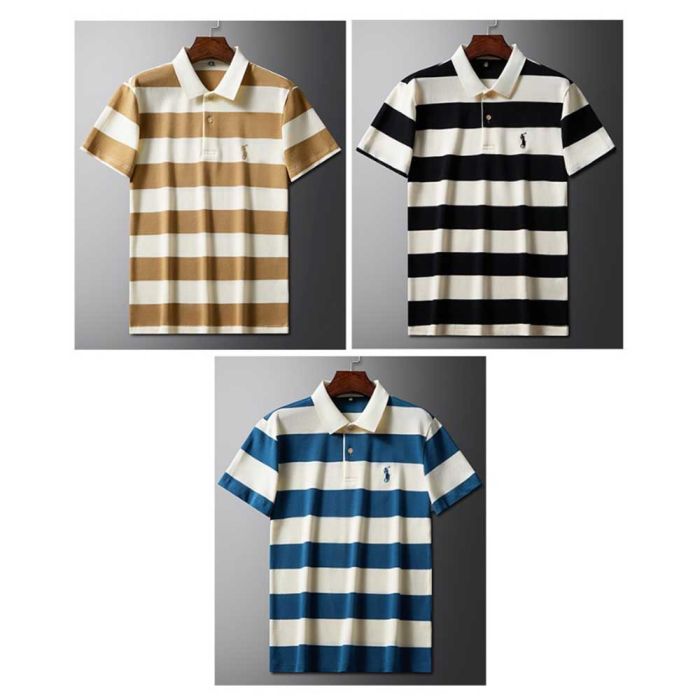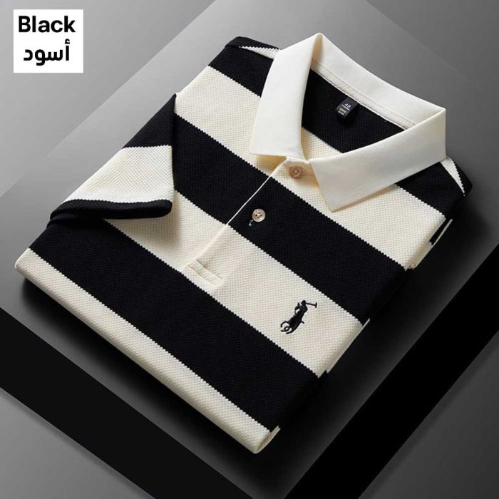 - Short Sleeve Striped Polo Shirt with Classic Collar For Men