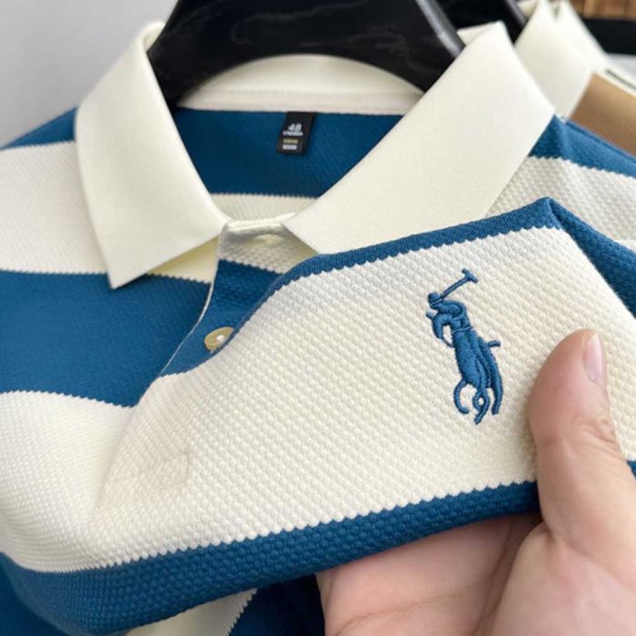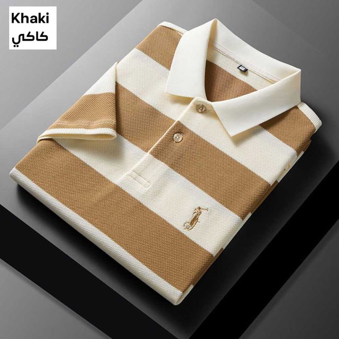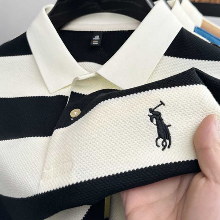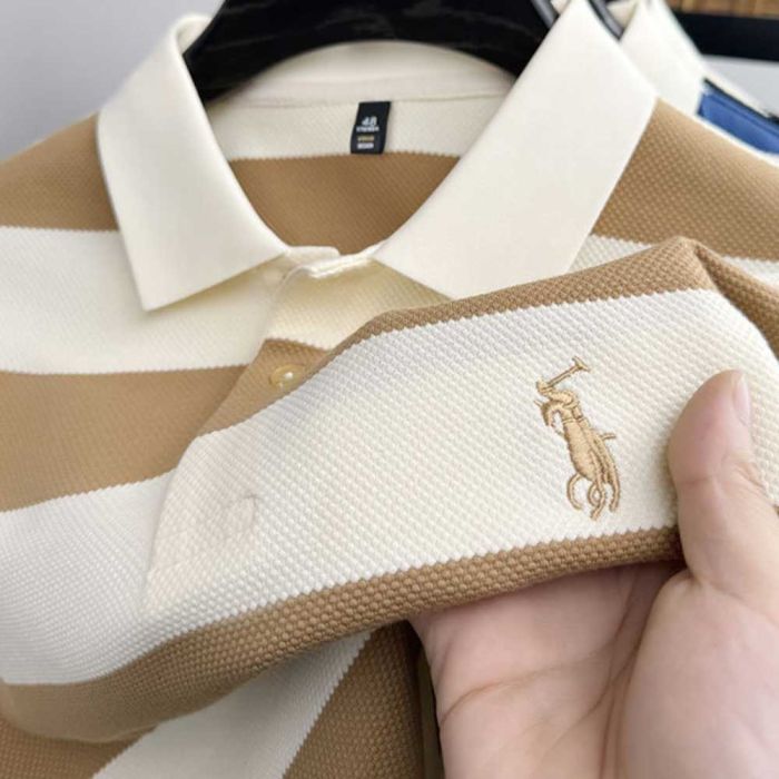 Short Sleeve Striped Polo Shirt with Classic Collar For Men