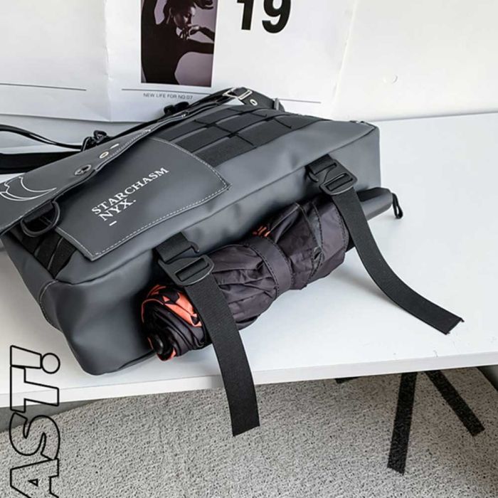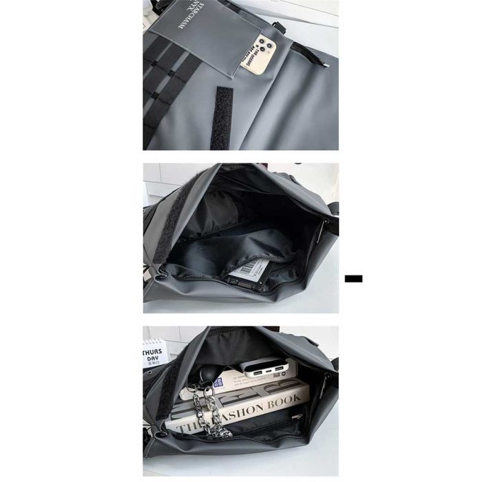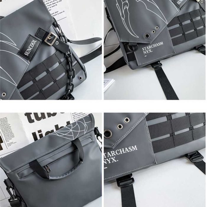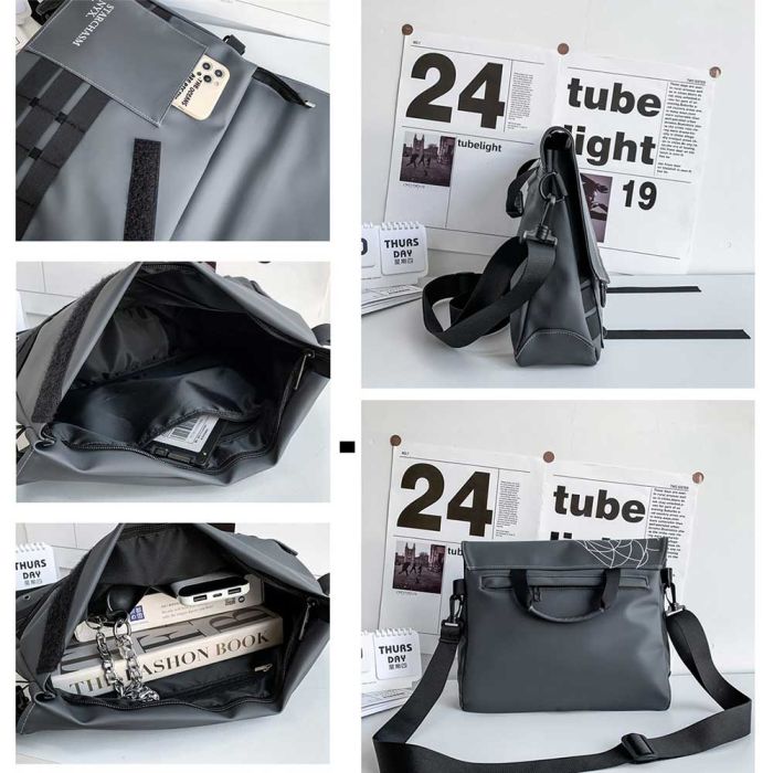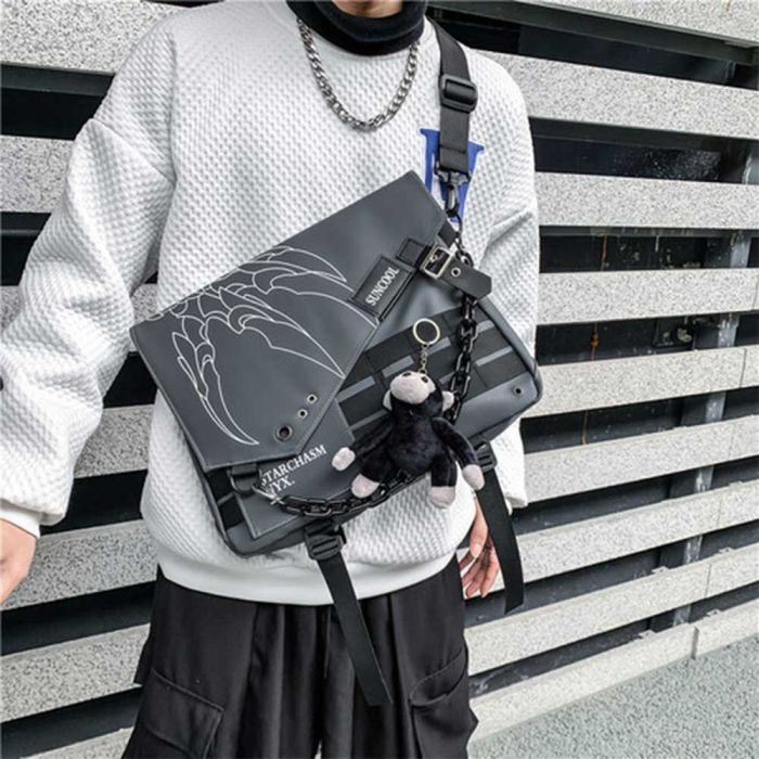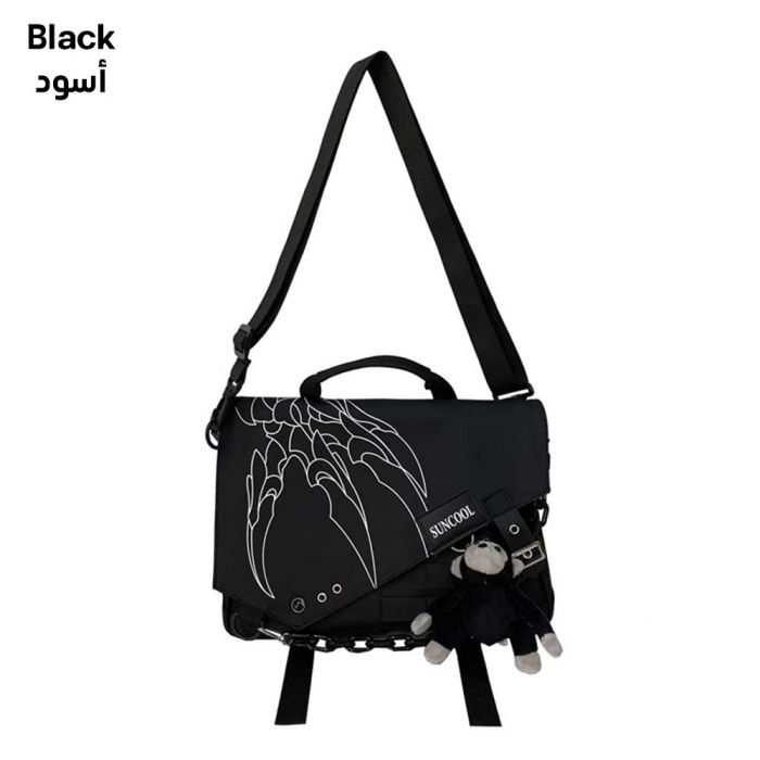 This trendy crossbody bag features a bold and youthful design, complete with a detachable front chain and a wide adjustable shoulder strap for added comfort. It offers ample space for tablets and daily essentials with organized inner pockets, making it a stylish and practical choice for college, travel, or everyday use.