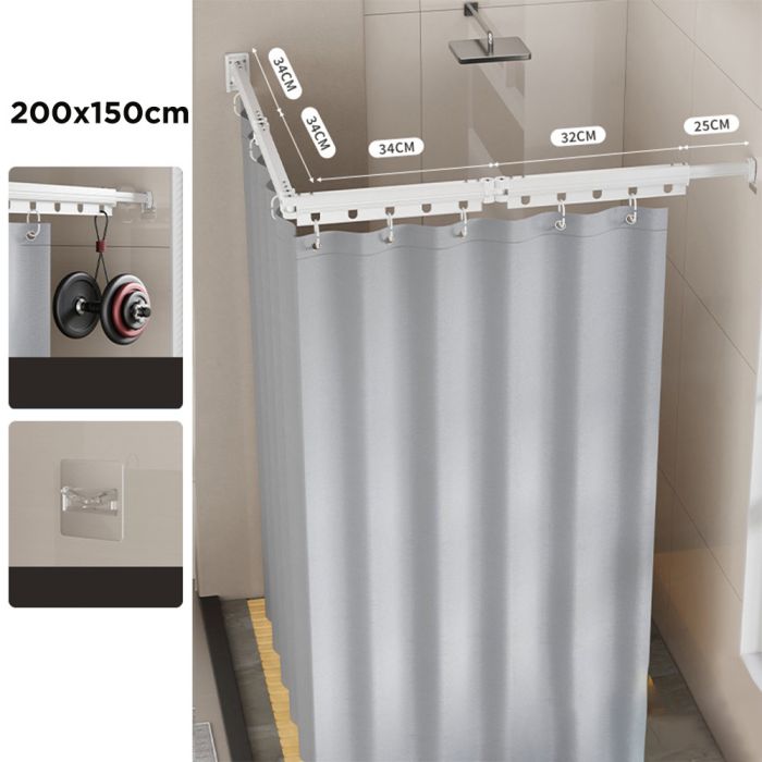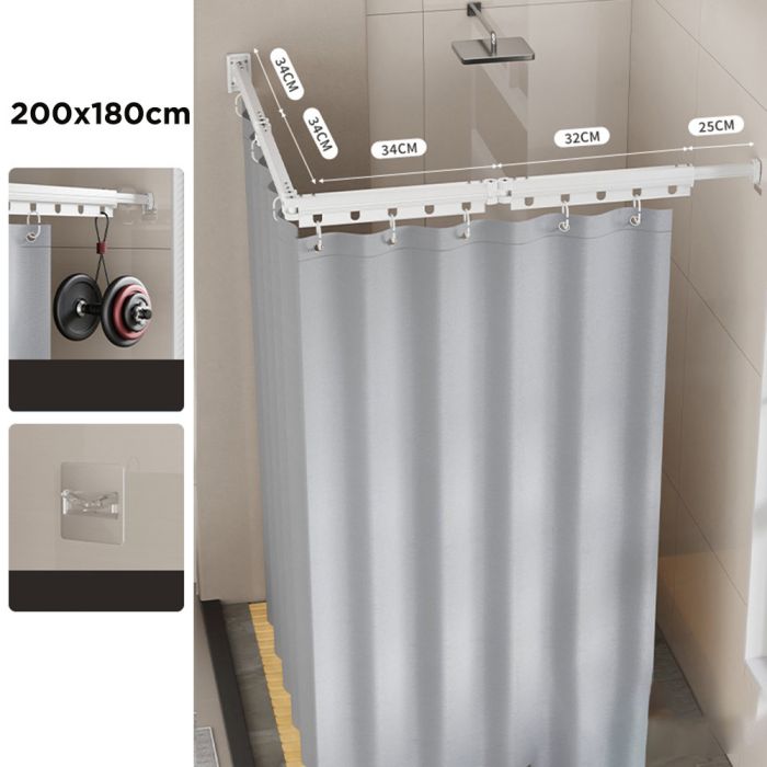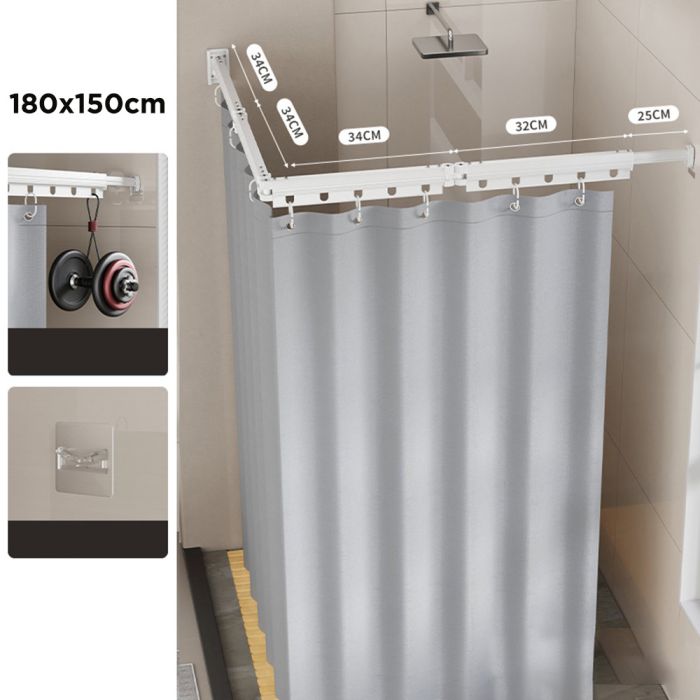 - Shower Curtain with Foldable Corner Arm