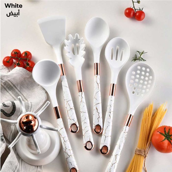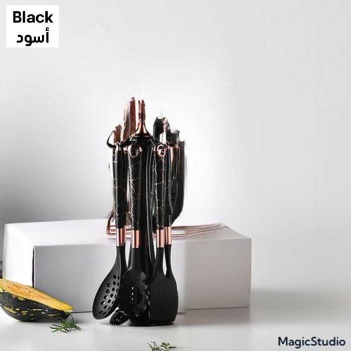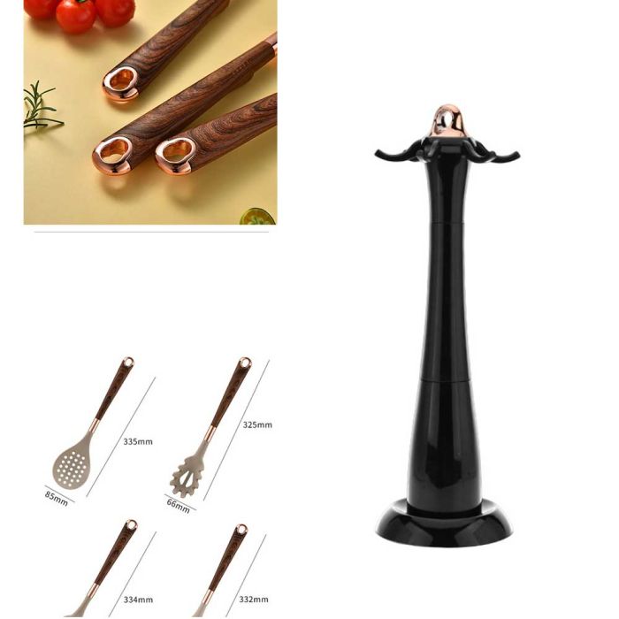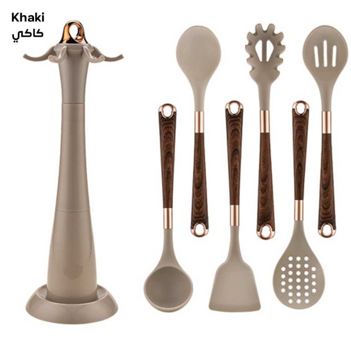 - Silicone and Wood Kitchen Utensil Set with Stand - 7 Pcs