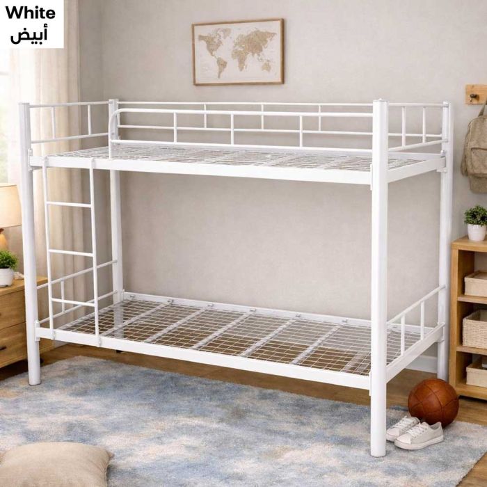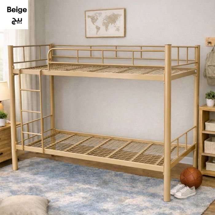 Modern metal bunk bed that combines strength, durability, and stylish design, ideal for children's rooms, shared rooms, hostels, or staff accommodations. Its sturdy metal frame with a built-in side ladder makes climbing easy, and its space-saving design keeps the room tidy and gives it a modern, functional look.