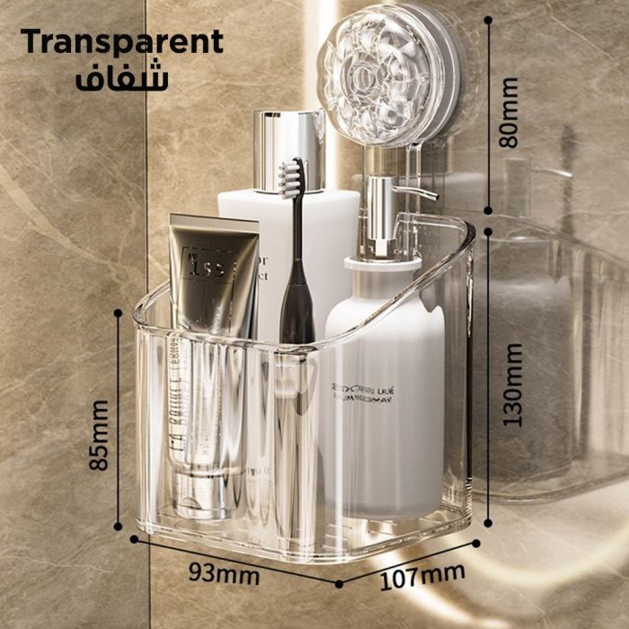 This Wall-mounted Bathroom Storage Stand Is Made of Durable, High-quality Plastic That Is Water and Moisture Resistant. It's the Perfect Solution for Organizing Your Toiletries and Cosmetics in the Sink or Toilet Area Without Drilling or Creating a Mess. It Features a Strong Suction Cup System That Maintains Its Hold on Smooth Surfaces Such as Glass and Ceramic, Saving Space and Keeping Everything Within Easy Reach. with a Sleek, Transparent Design That Blends Seamlessly with Modern Bathroom Decor, It's a Must-have Addition to a Tidy and Comfortable Home.