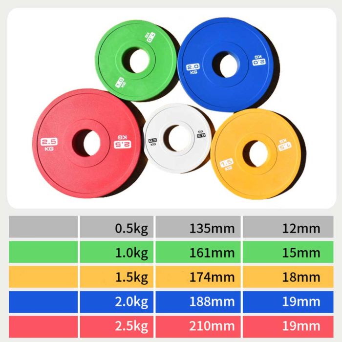 This small weight plate set is designed to provide precise strength progression through low-level increments suitable for safe gradual training. It features durable construction that minimizes friction during use and fits standard weightlifting bars. The set includes five weight levels with two pieces each, making it ideal for lifting, light loading, and both home and professional workouts.