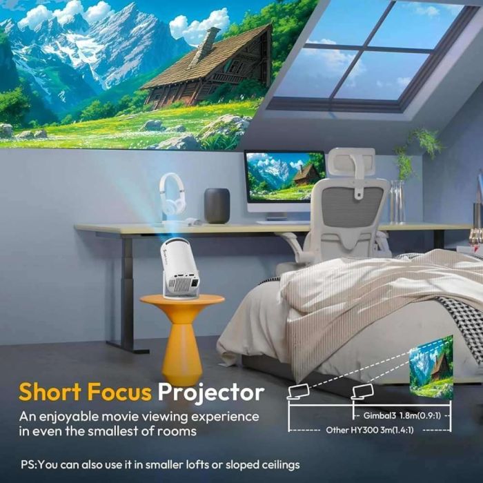 Transform your home into a complete cinema with the Smartbarry HT5 projector, delivering a stunning 4K viewing experience. It comes equipped with Android, allowing you to run over 8,000 apps directly, such as Netflix and YouTube, without the need for additional hardware. Its innovative design, featuring a 210-degree rotating base, allows for flexible projection onto walls or ceilings, making it the perfect entertainment solution for movies, games, and presentations anywhere with minimal setup effort.