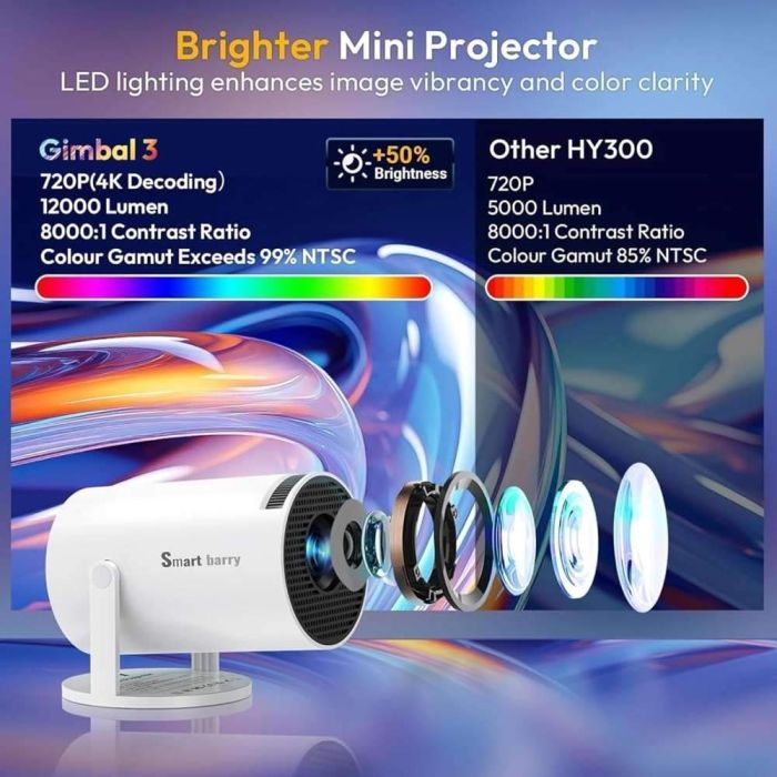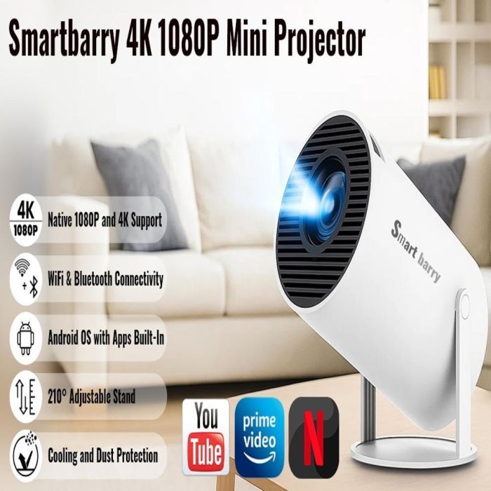 - Smart Android Projector 1080P 4K with 210° Rotatable Design by Smartbarry