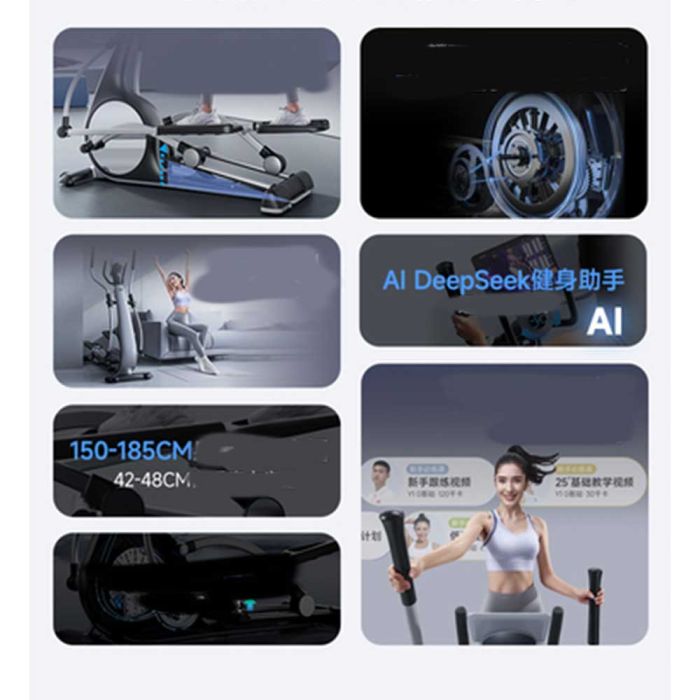 This smart elliptical delivers an advanced workout experience with 32 magnetic resistance levels and AI auto-adjust control. It features a 42-48 cm adaptive stride, 3 incline levels, and a compact 0.9 m² footprint. Equipped with a tablet stand and smart connectivity, it offers accurate performance tracking and efficient home training.