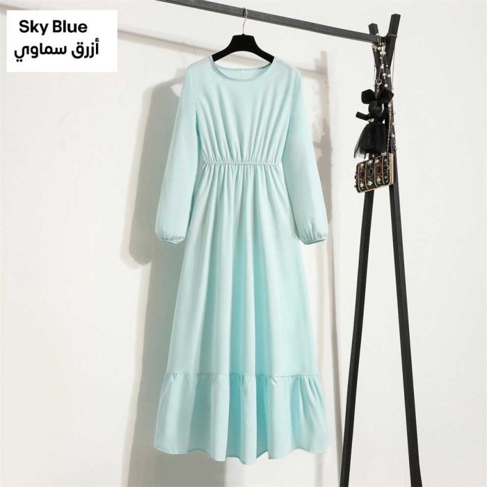 This Elegant Women's Chiffon Maxi Dress with a Sculpted Waist Is Crafted from Soft, Flowing Chiffon Fabric. It Features a Long Design with Comfortable Sleeves and a Round Neckline. It Also Features a Figure-slimming Waist Tie, Making It Ideal for Evening Parties and Special Occasions Thanks to Its Stunning Aesthetic.