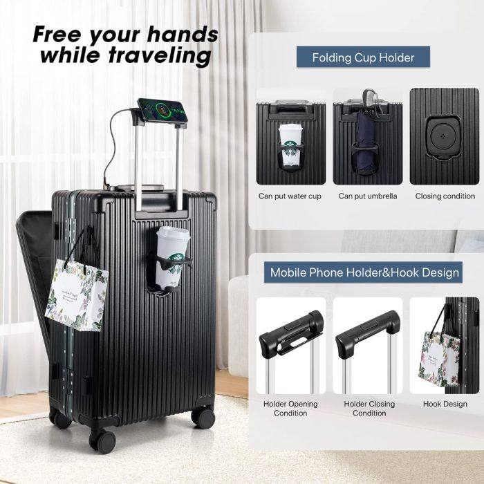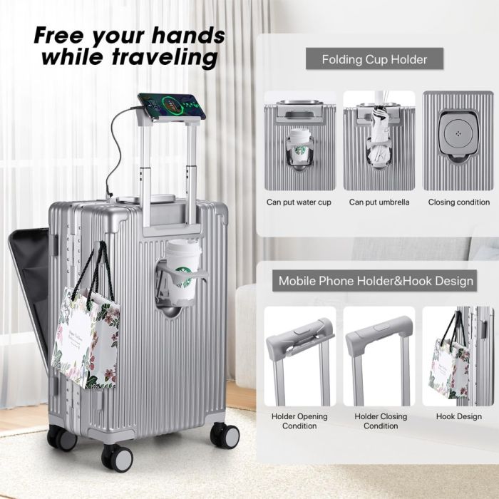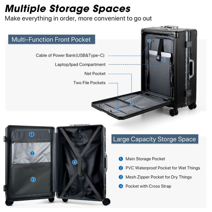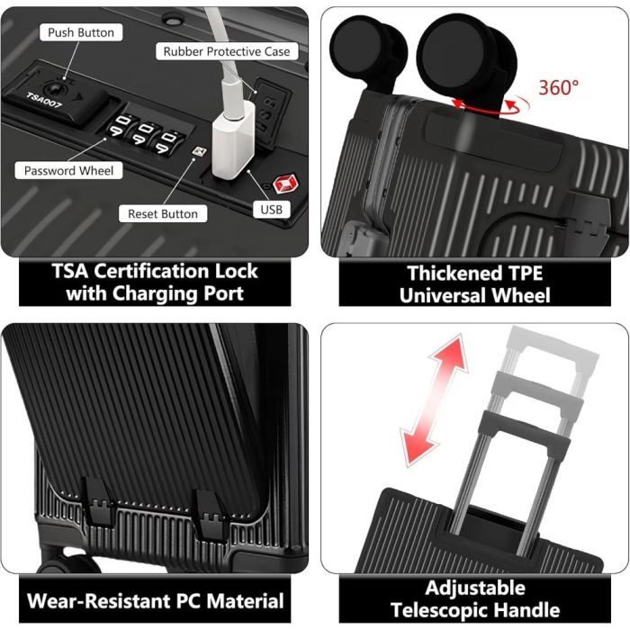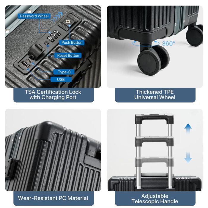 - Smart Travel Luggage with Dual Lock and USB and Type-C Port 20 and 26 Inch