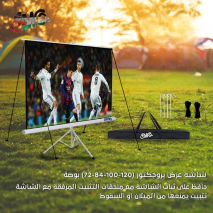 The SMQ PRO monitor offers excellent viewing quality thanks to its high-definition display surface, designed to deliver a clear image for presentations, movies, and meetings. It features a sturdy tripod stand built to withstand daily use, with an adjustable locking ring for easy height adjustment. The included carrying case allows for convenient transport and storage, making it ideal for both indoor and outdoor use.