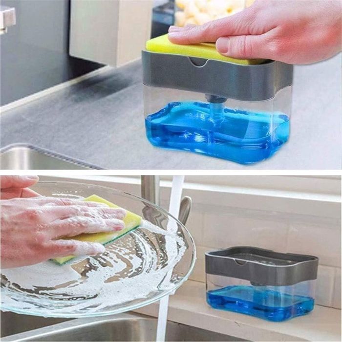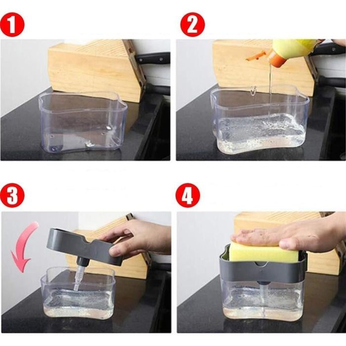 Cleaning dishes is about to get a whole lot faster with this Soap Pump & Sponge Holder! Fill it up with 385ml of your favorite dish soap, then use the sponge to press down on the pump, which dispenses the perfect amount of dish soap up onto the sponge.
