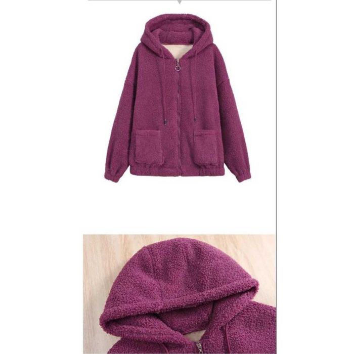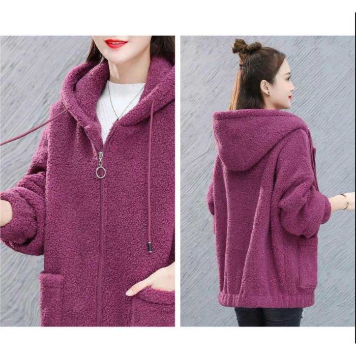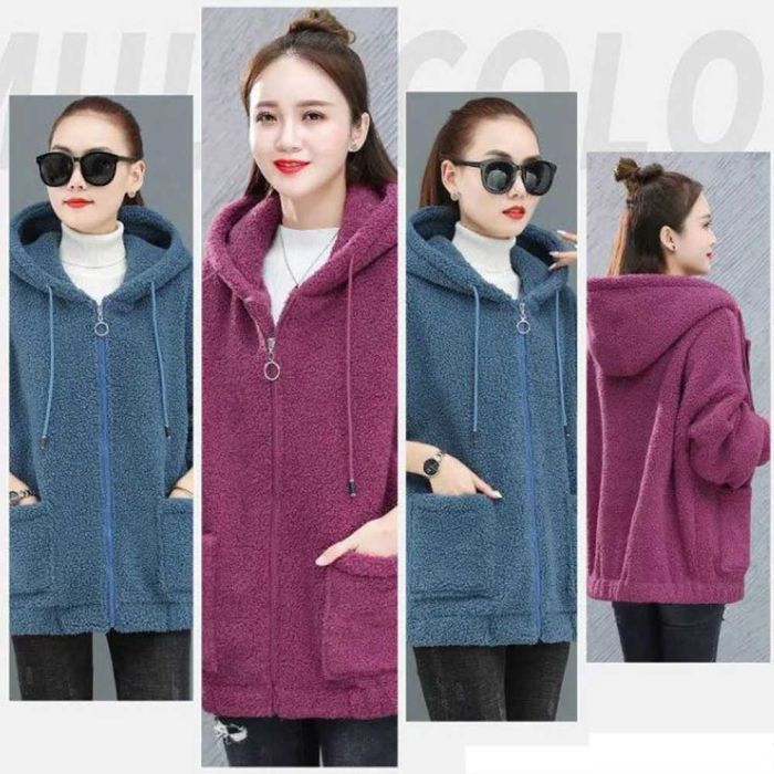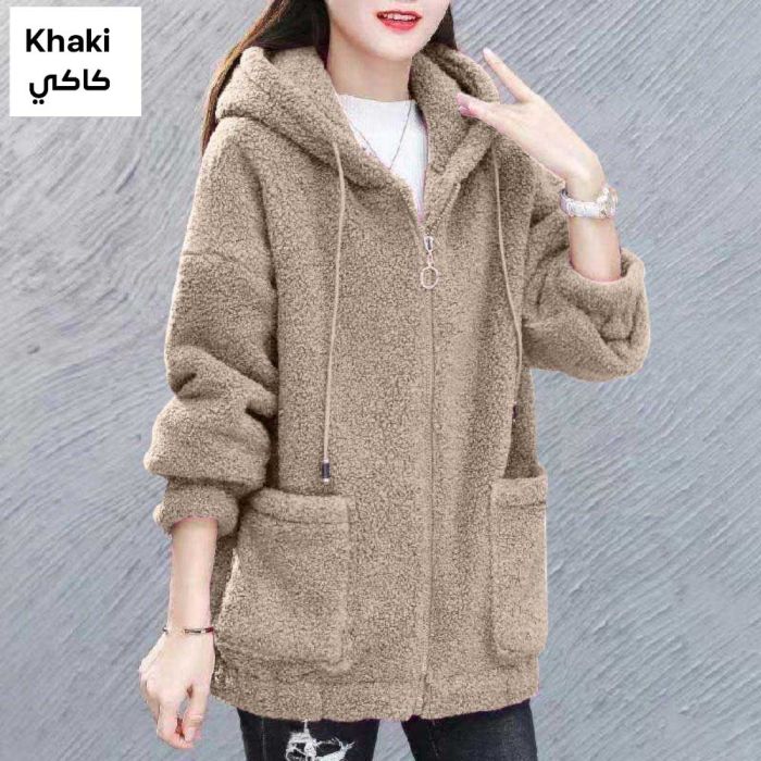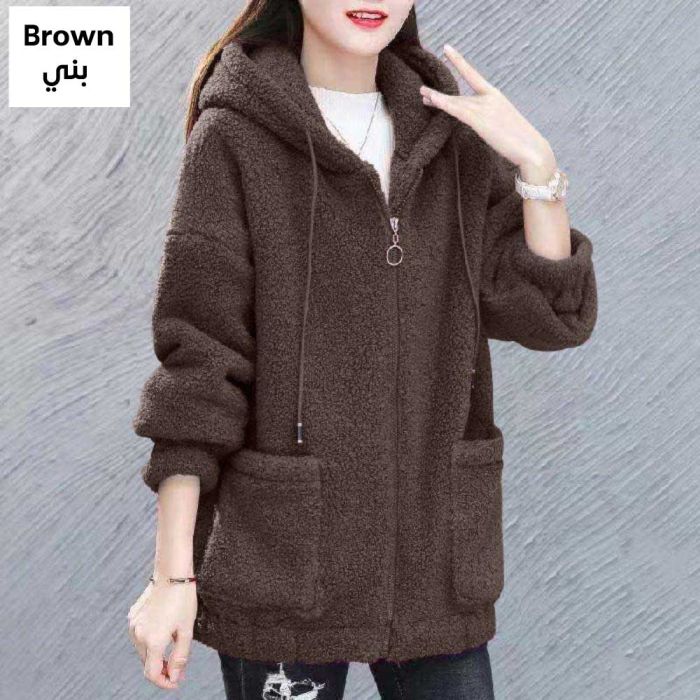 This soft fleece hooded jacket for women is crafted from high-quality warm material that delivers cozy warmth and a gentle touch. Its relaxed fit offers easy movement, while the hood adds a modern look perfect for comfortable daily wear.
