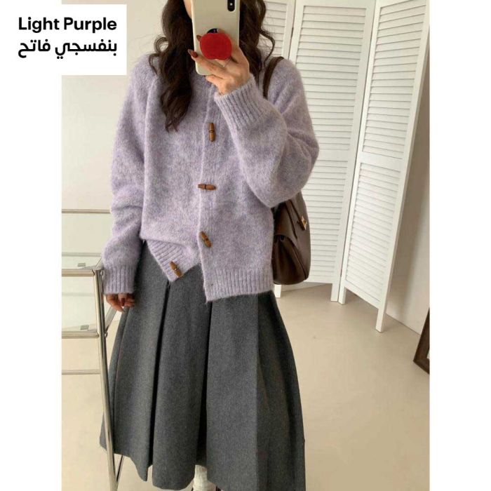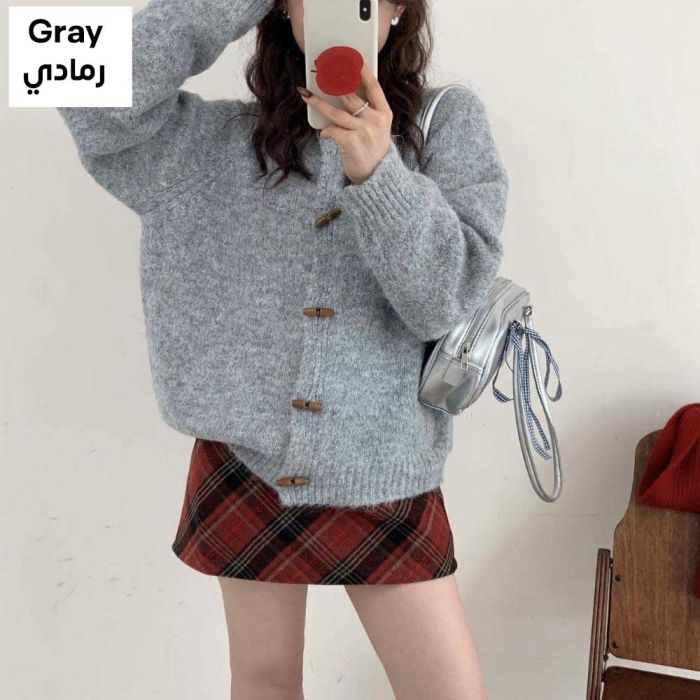 This Soft Loose Korean Cardigan for Women crafted from a comfortable material that adds a warm touch, featuring a loose fit that delivers a relaxed feel, with elegant buttons enhancing the Korean style, perfect for daily outfits and maintaining its quality