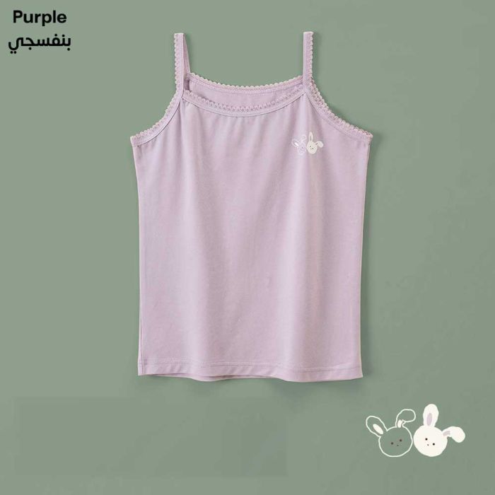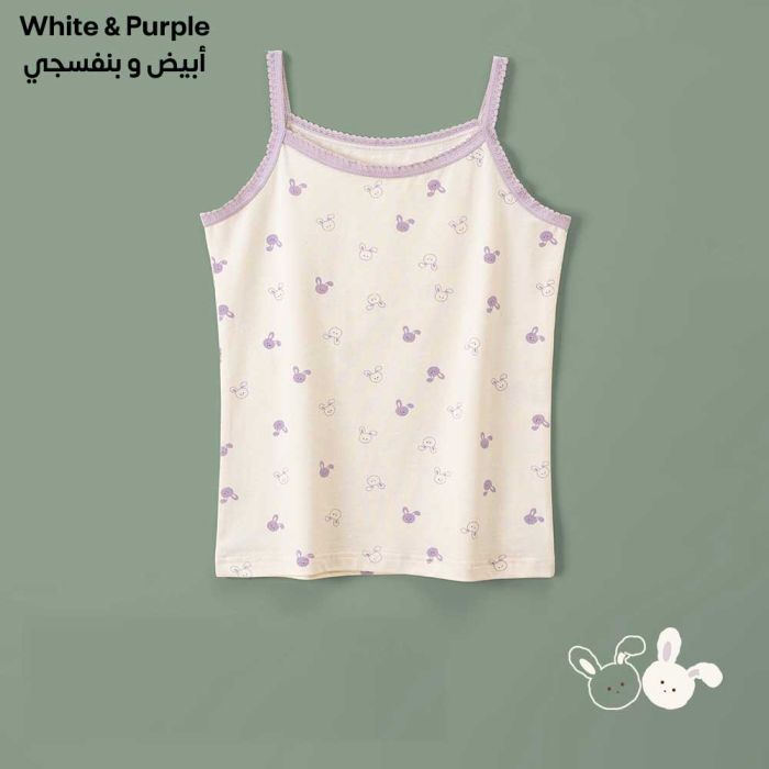 - Soft Printed Cotton Tank Tops for Girls - 100cm - White & Purple
