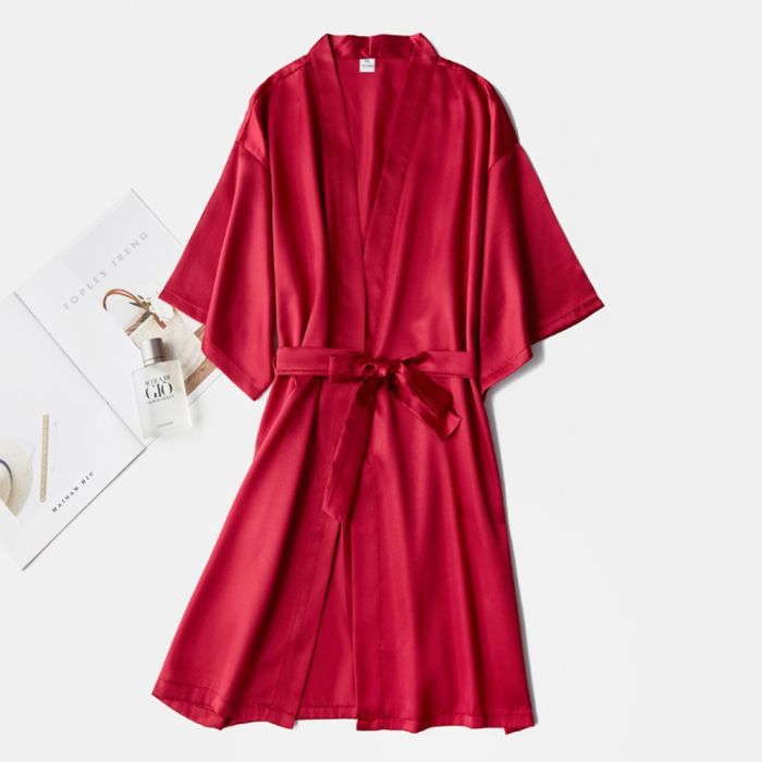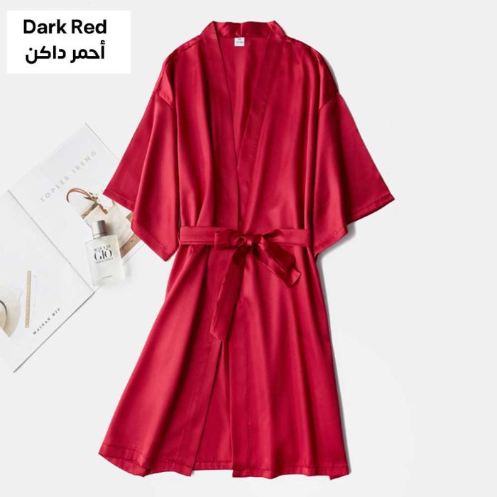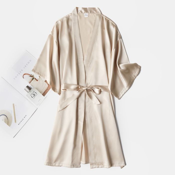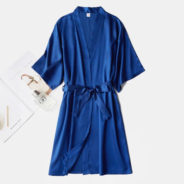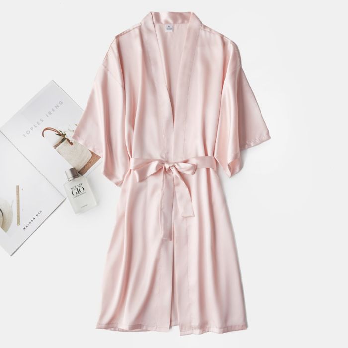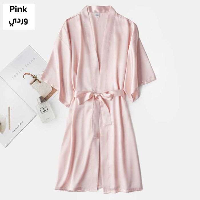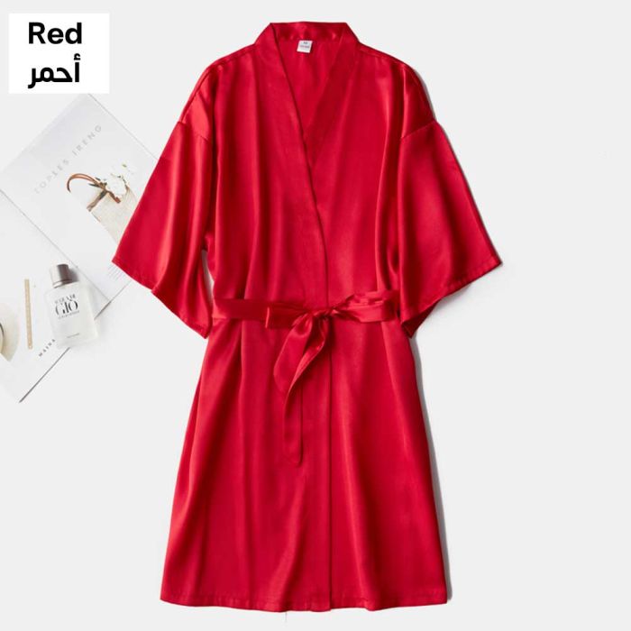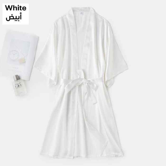 This Robe and Chemise Sleep Set for Women is Made from Luxurious Silk-imitation Fabric. This Nightgown Offers a Peaceful and Comfortable Sleeping Experience. Featuring an Elegant Half-sleeve Design, It is Ideal for Morning Parties or Wedding Preparations. It Drapes Softly over the Body, Giving a Sense of Absolute Luxury. It is Also Designed to Be Lightweight and Suitable for Wearing as a Thin Cardigan over Nightwear. Enjoy a Beautiful and Comfortable Look at Home, Thanks to Its Delicate Cut and Calming Color That Exudes Timeless Elegance.