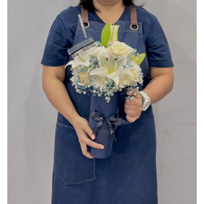 Delivered within 3 hours (From 10:00 AM toSogha Luxury Tumbler with Mix Roses (7 Flowers) 10:00 PM) - Friday (From 2:00 PM to 10:00 PM) to all Kuwait Areas