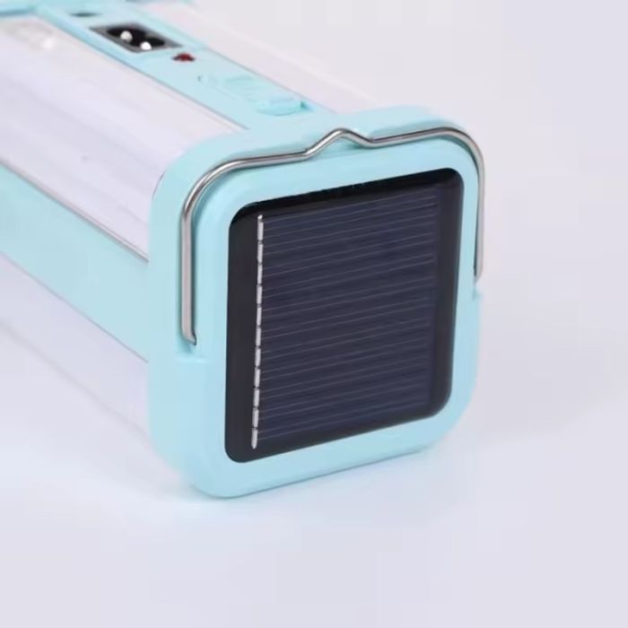 Light up any dark space with this solar-powered emergency light. This hand-held or solar-powered light features a 2200mAh battery that provides powerful, stable illumination. It features a comfortable handle for easy carrying and a two-step switch for controlling different modes, making it ideal for travel, camping, emergency repairs, or power outages. Its practical and durable design ensures reliable illumination in all conditions.