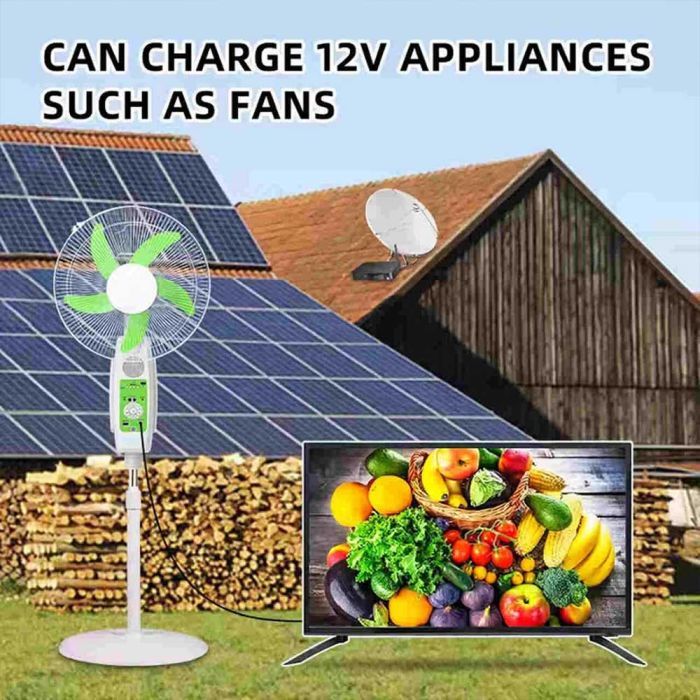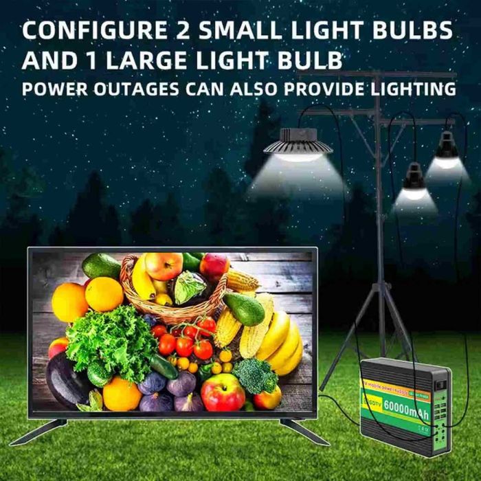 Get entertainment anywhere with this solar powered TV, designed to deliver reliable performance without relying on conventional electricity. Equipped with 50W solar panel and 60000mAh battery, circular lamp, dual LED bulbs and remote control